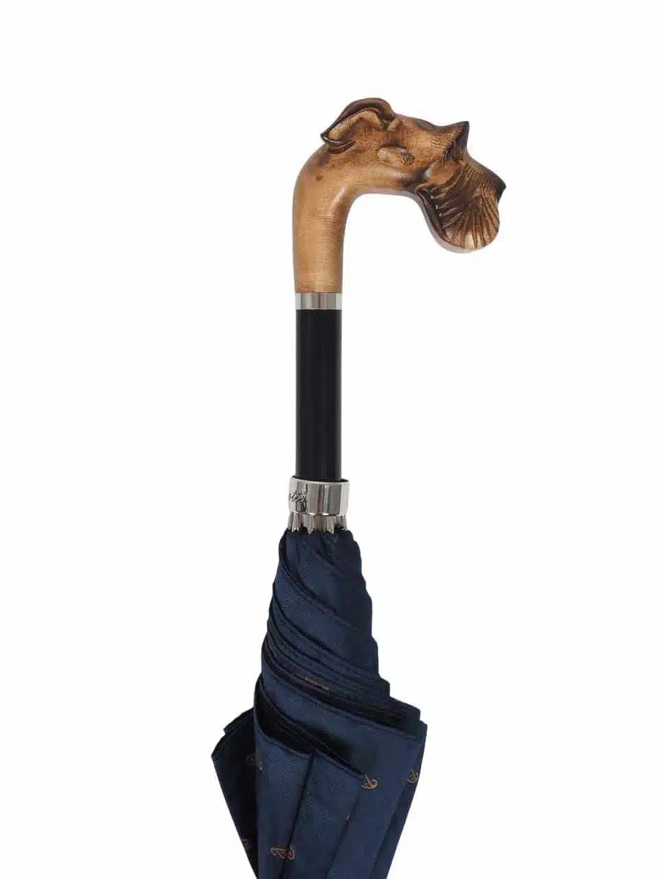 Ett fantastiskt fint handgjort paraply från Pasotti 1956. Paraplyet är handgjort i Italien och har ett handtag med form av ett hundansikte.