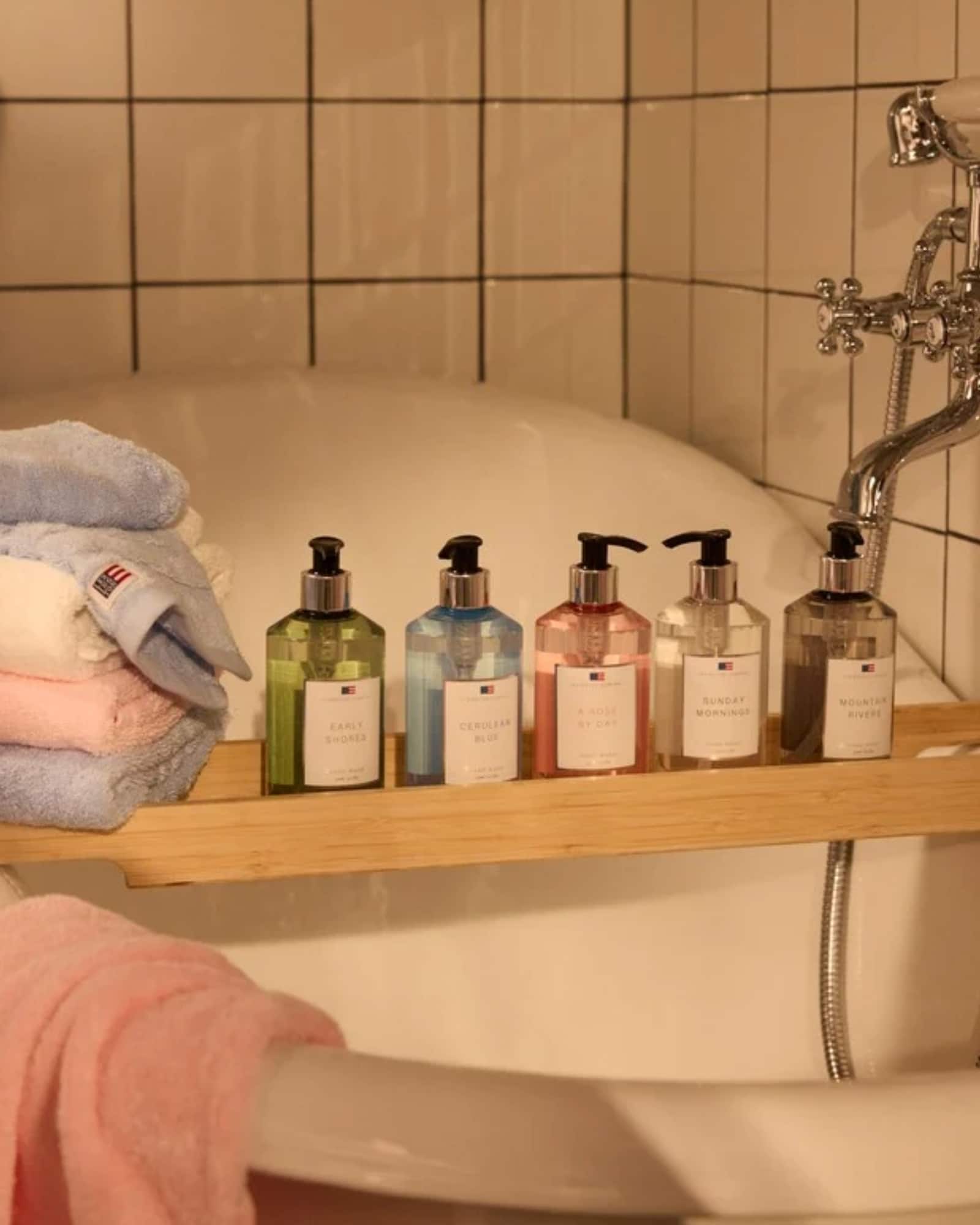 Med sin vintagegröna flaska och friska doft blir Lexington Early Shores handtvål ett stilfullt och funktionellt inslag i hemmet.
