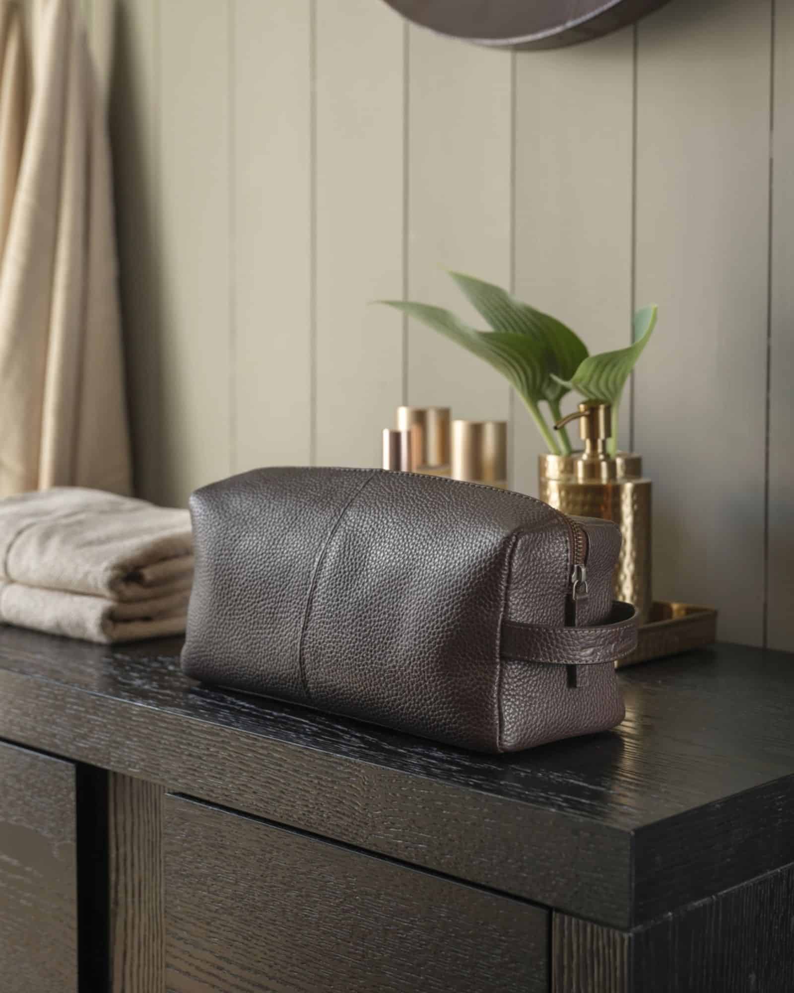 Halvor Bakke Ballita necessär i brunt läder. Elegant, slitstark och praktisk – håll ordning med stil