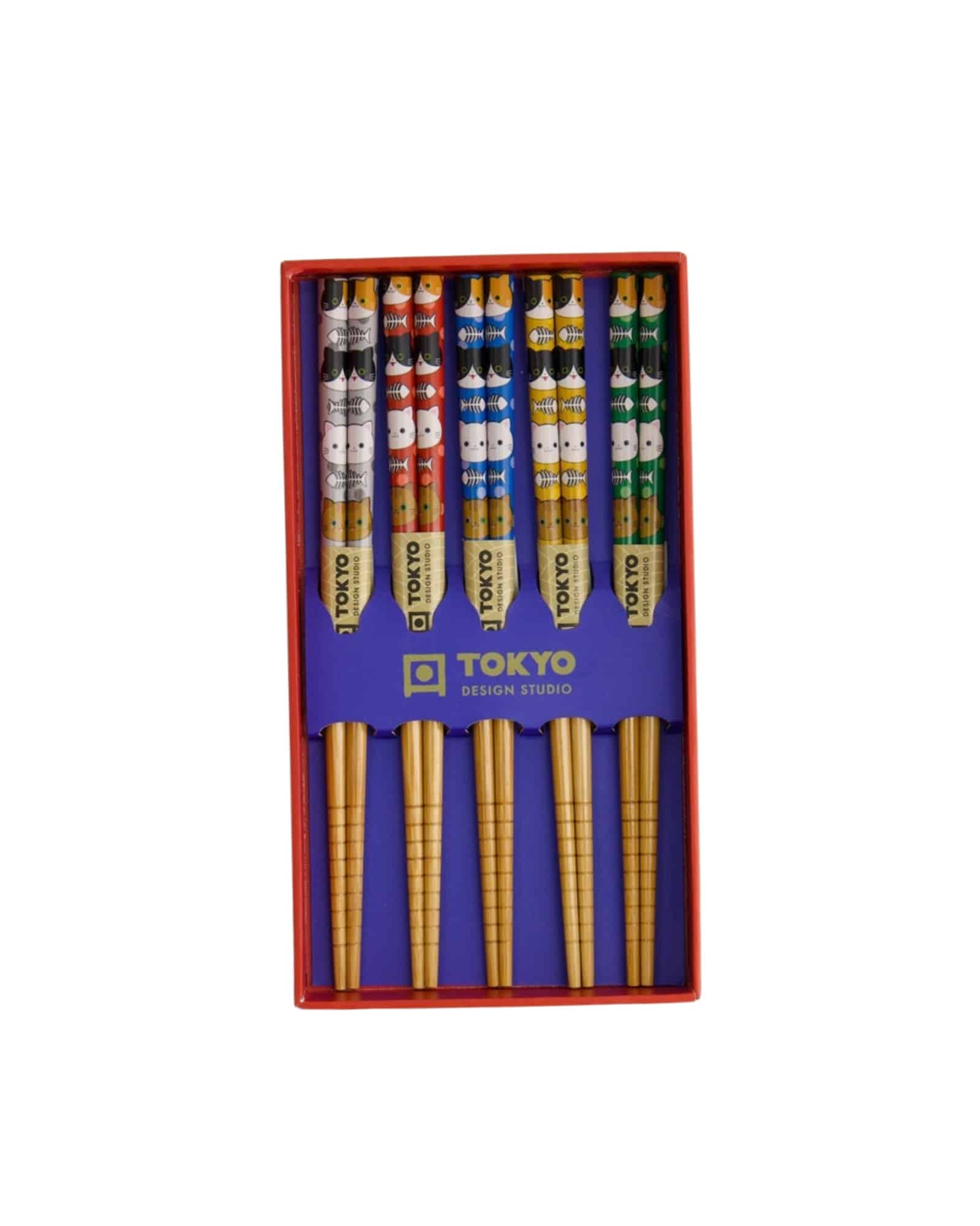 Tokyo Design studio Barnset med 5 ätpinnar. Gör måltiden roligare för barn med Tokyo Design Studio Barnset med 5 par ätpinnar. Tillverkade av hållbar bambu är pinnarna både livsmedelssäkra och lättanvända. Varje par har söta kattmotiv som gör matstunden både rolig och charmig.