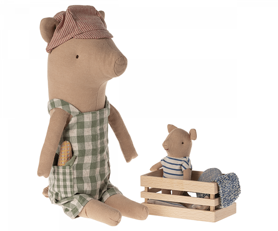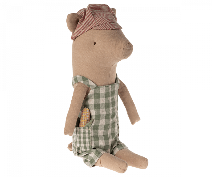 Oink Oink – säg hej till den sötaste grisen. Den här grisen kommer i overall och med mössa på – han kan sitta på egen hand!