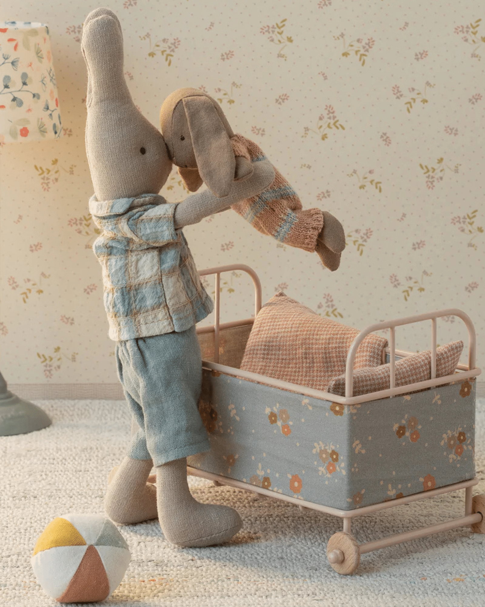 Med Maileg Kanin, Micro – Brun/Dusty Rose med Stickad Dräkt får du en mjuk och inspirerande leksak. Den blir snabbt en älskad vän i dockskåp och fantasifulla lekvärldar, och fungerar samtidigt som en dekorativ detalj när den inte används. Dessutom bidrar den till att skapa en mysig och inbjudande atmosfär i barnens rum.