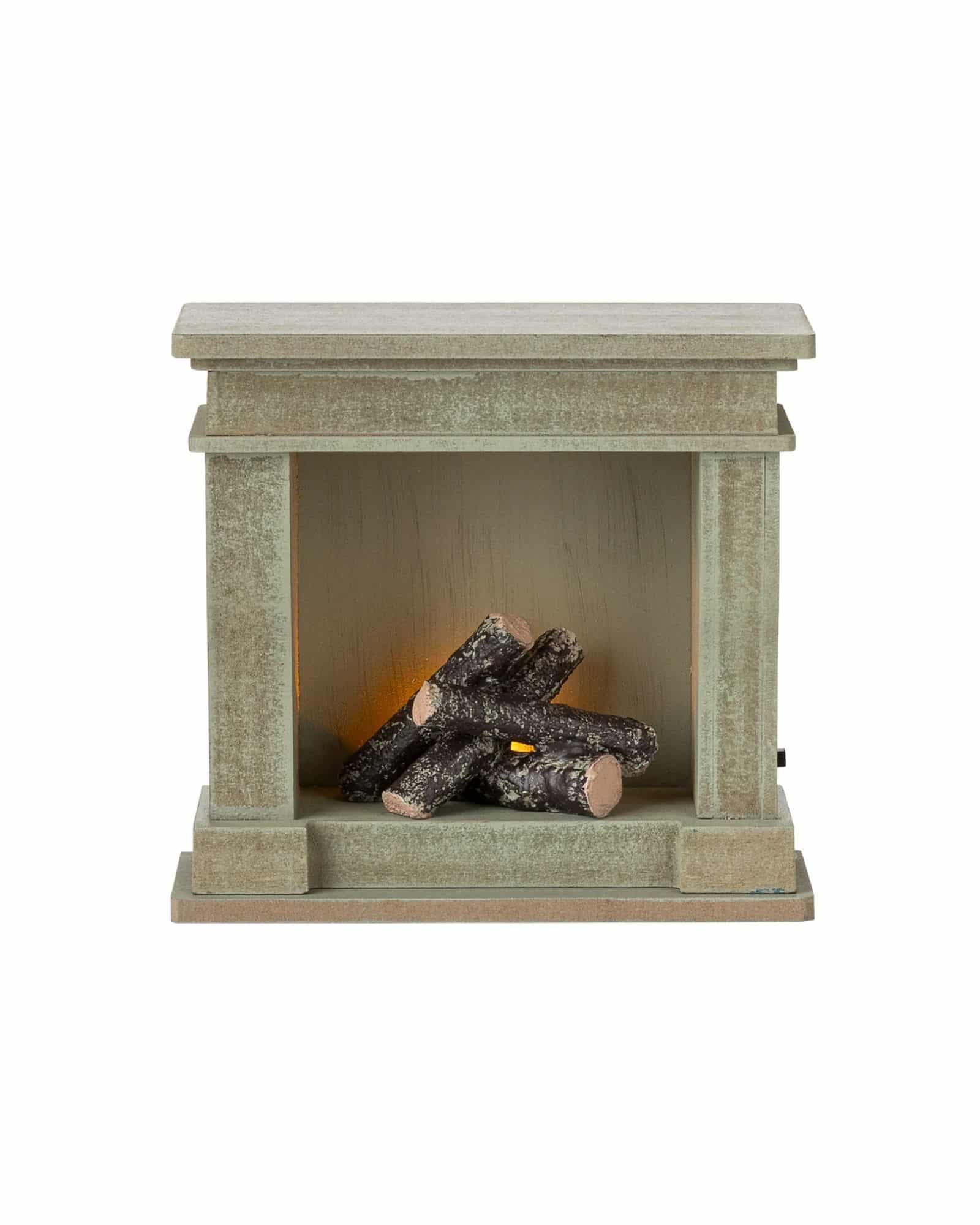 Maileg Öppen Spis – Miniatyr Skapa en mysig och levande stämning i ditt Maileg-hem med denna fina vedeldade spis i miniatyr. Maileg har utformat spisen med autentiska detaljer och en vacker vintagefinish som gör den till ett naturligt inslag i både vardagsrum och sovrum. Placera ett knappcellsbatteri i spisen för att tända det lilla ljuset som glöder likt riktig eld. Under kyliga kvällar kan dina Maileg-vänner samlas runt spisen och njuta av värmen. När det är dags att sova, släck spisen och låt natten ta vid. Du skapar enkelt en personlig och inbjudande miljö genom att kombinera spisen med andra möbler och tillbehör från Maileg. Batteri ingår inte.