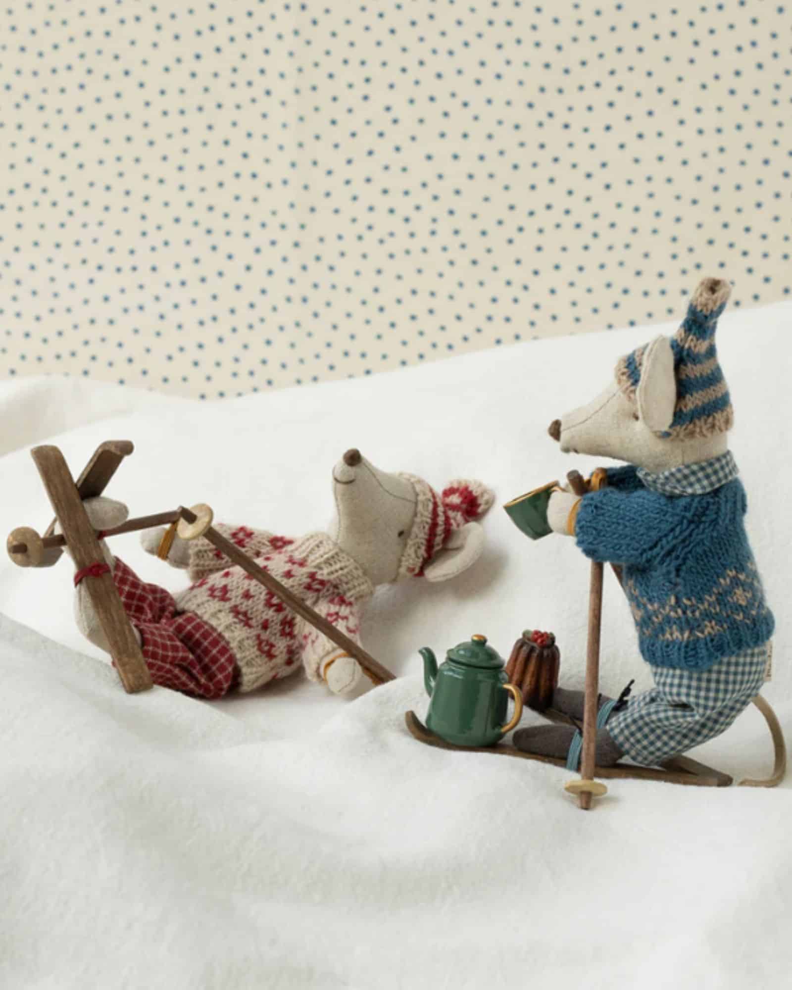 Maileg skidor och skidstavar Mamma och Pappa mus