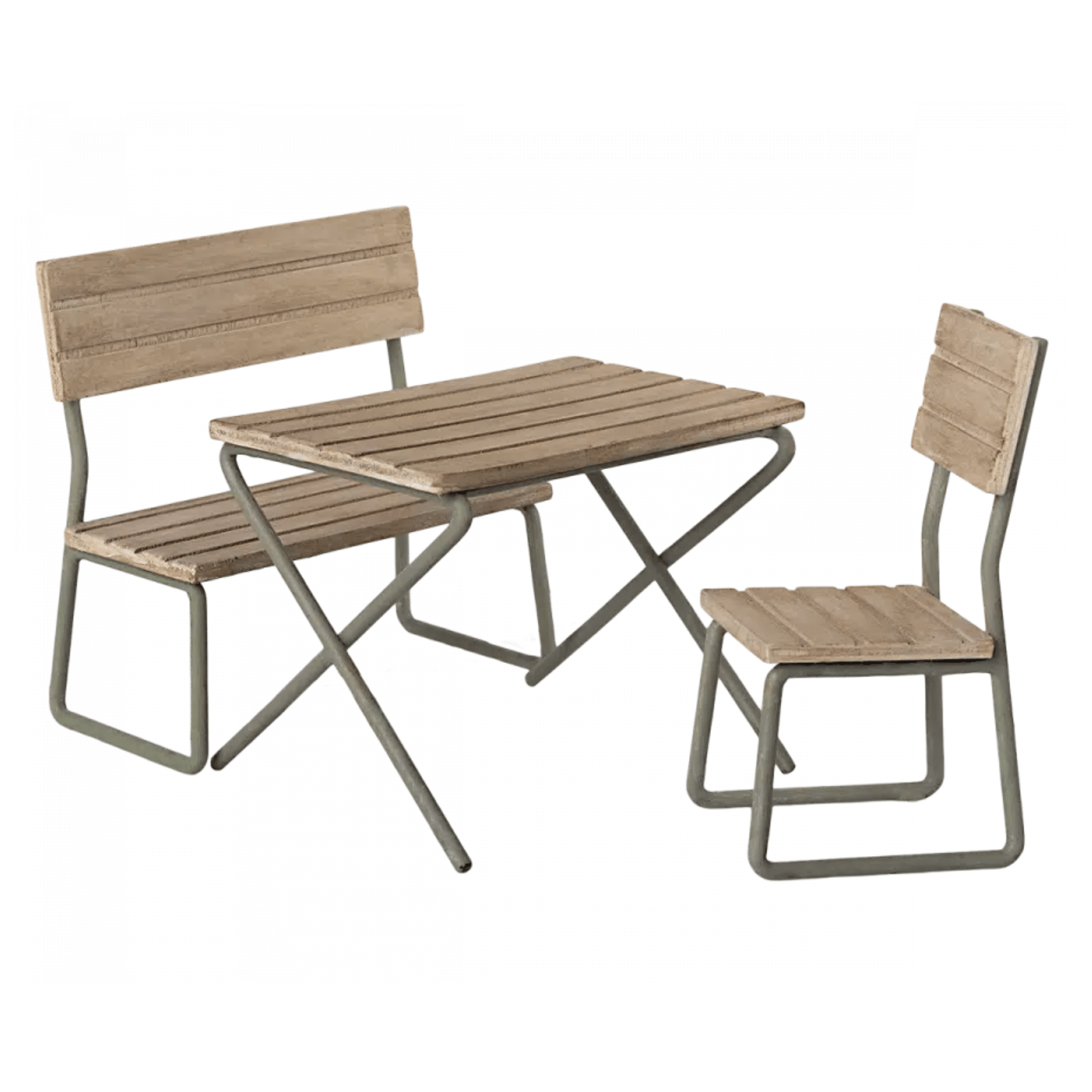 Glöm inte uterummet – detta trädgårdsset är perfekt för alla sommarträffar. Den har en vintage-look och passar alla kaniner och kaniner i storlek 1 och 2 och familjen Teddy. Basen är gjord av metall och toppen är i trä.