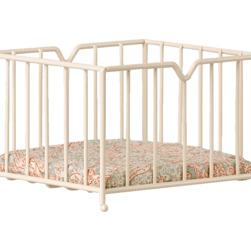 Håll din baby kanin säker i en söt lekhage, denna storlek passar alla vänner i storlek Micro perfekt. Lekhagen är i metall och målad i en mjuk off-white ton. I botten ligger en mjuk madrass klädd med unikt Maileg-tyg.