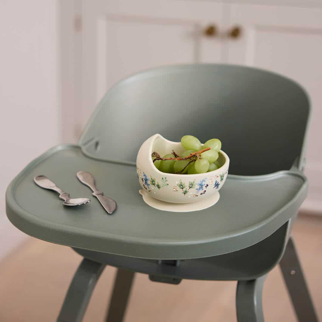 Alla ytor är enkla att torka av med en fuktig trasa. Brickan är dessutom maskindiskbar – ett självklart plus i den småbarnsvardag där tid är värdefull.