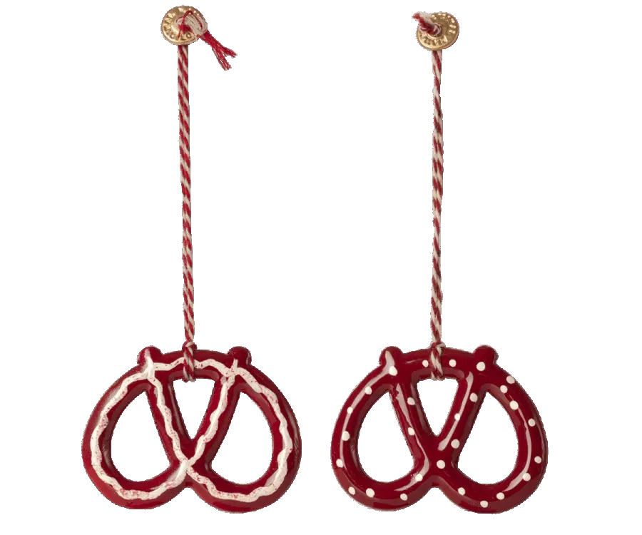 Maileg julpynt – röd kringla i metall med vit dekoration