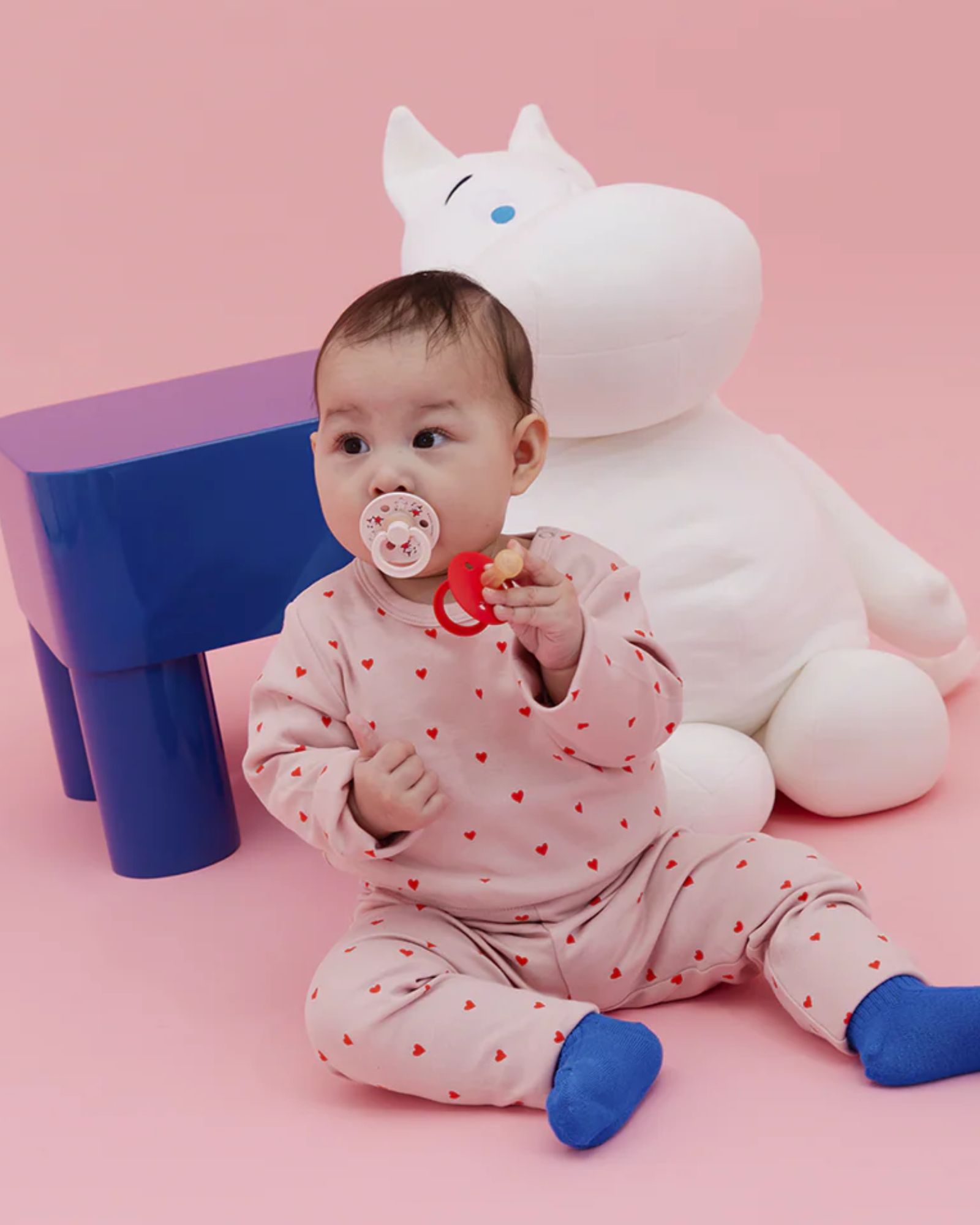 BIBS Moomin-nappar är fria från BPA, PFAS och ftalater, vilket ger full trygghet vid varje användning. De finns i flera storlekar som växer med barnet och stöder en sund munutveckling.