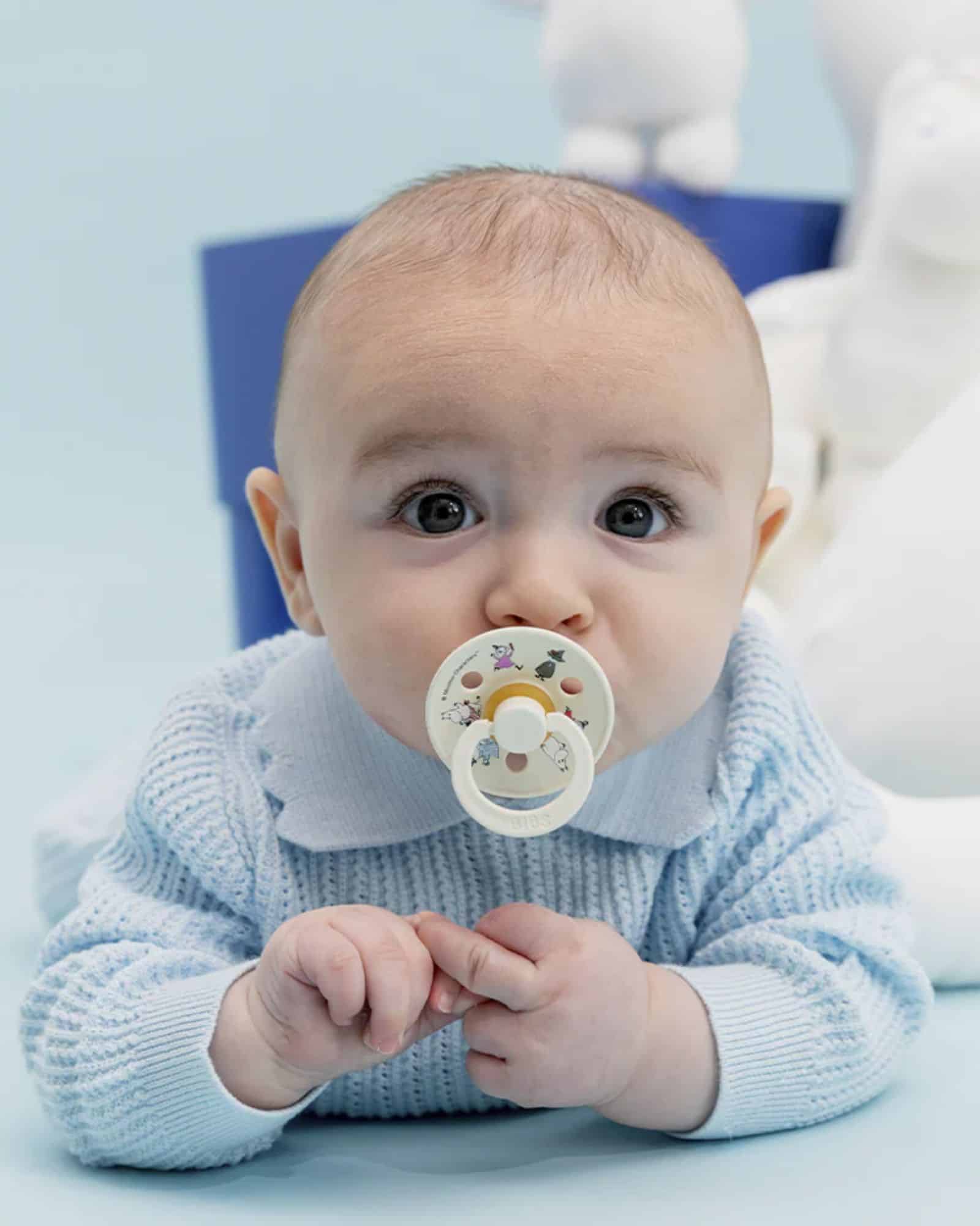 BIBS Moomin Nappar 2-pack Ivory mix storlek 2 (+6 månader). BIBS Moomin Nappar 2-pack Ivory Mix, storlek 2, är en del av den populära BIBS X MOOMIN-kollektionen. Serien kombinerar BIBS tidlösa design med Muminvärldens lekfulla uttryck och skapar nappar som både lugnar barnet och lockar fram leenden hos föräldrar.