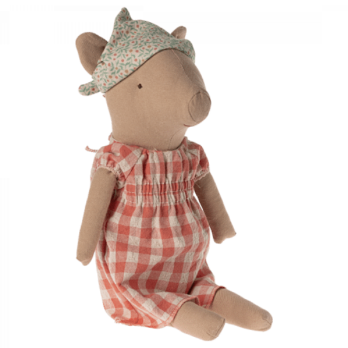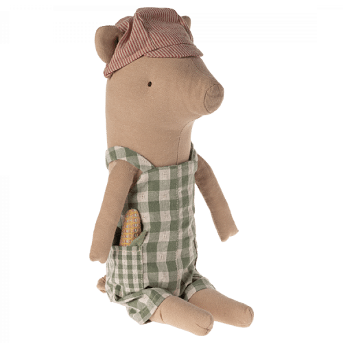 Ett perfekt lekset för att starta en berättelse. Den här lilla grisungen sover gott i sin trälåda med mjuka sängkläder. Lägg till de större grisarna för att förlänga leken.