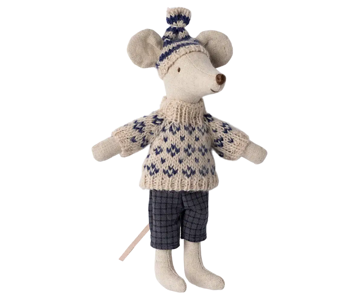 Maileg storasyster mus med skidor – Mailegs leksaker är alltid vackra!