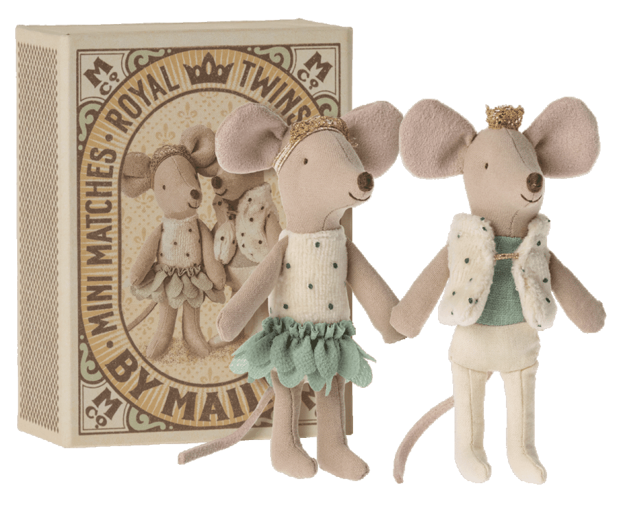 Den kungliga mus familjen växer större o större med dessa två tvillingar. Dom bär gyllene kronor och fina kläder!