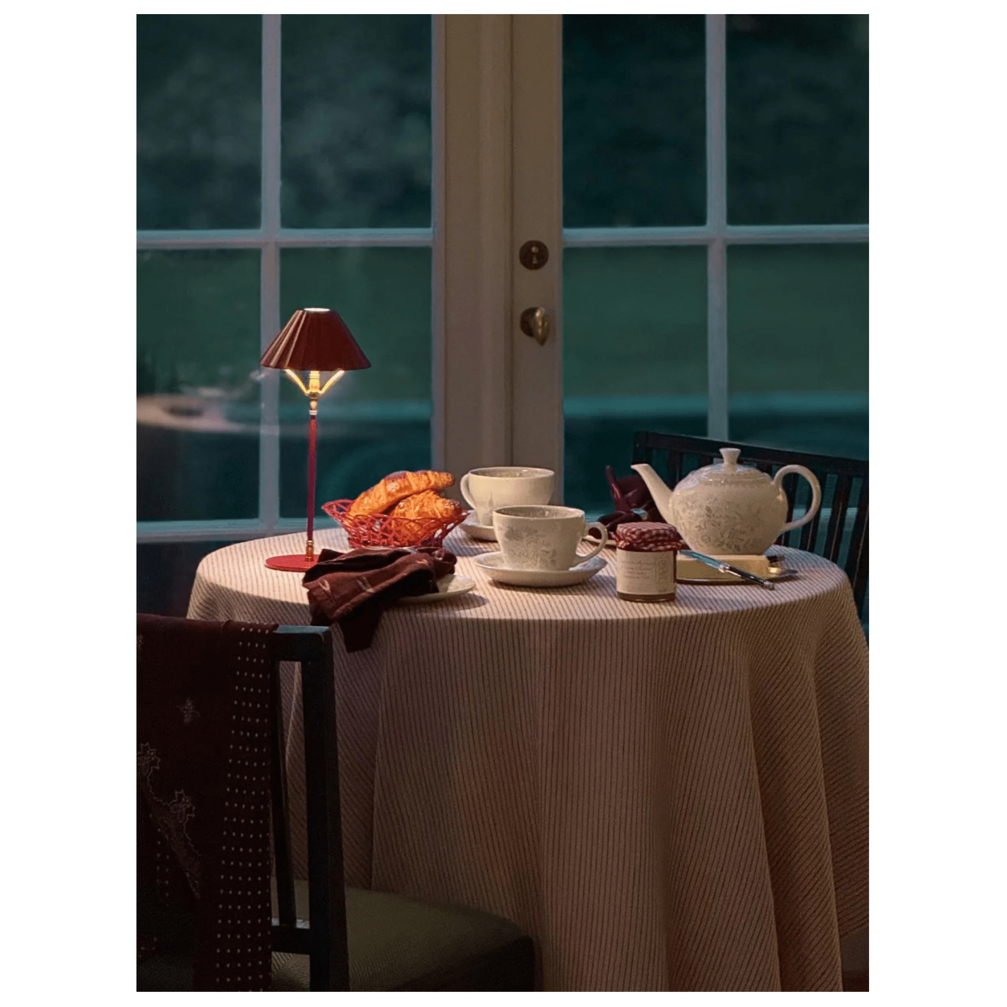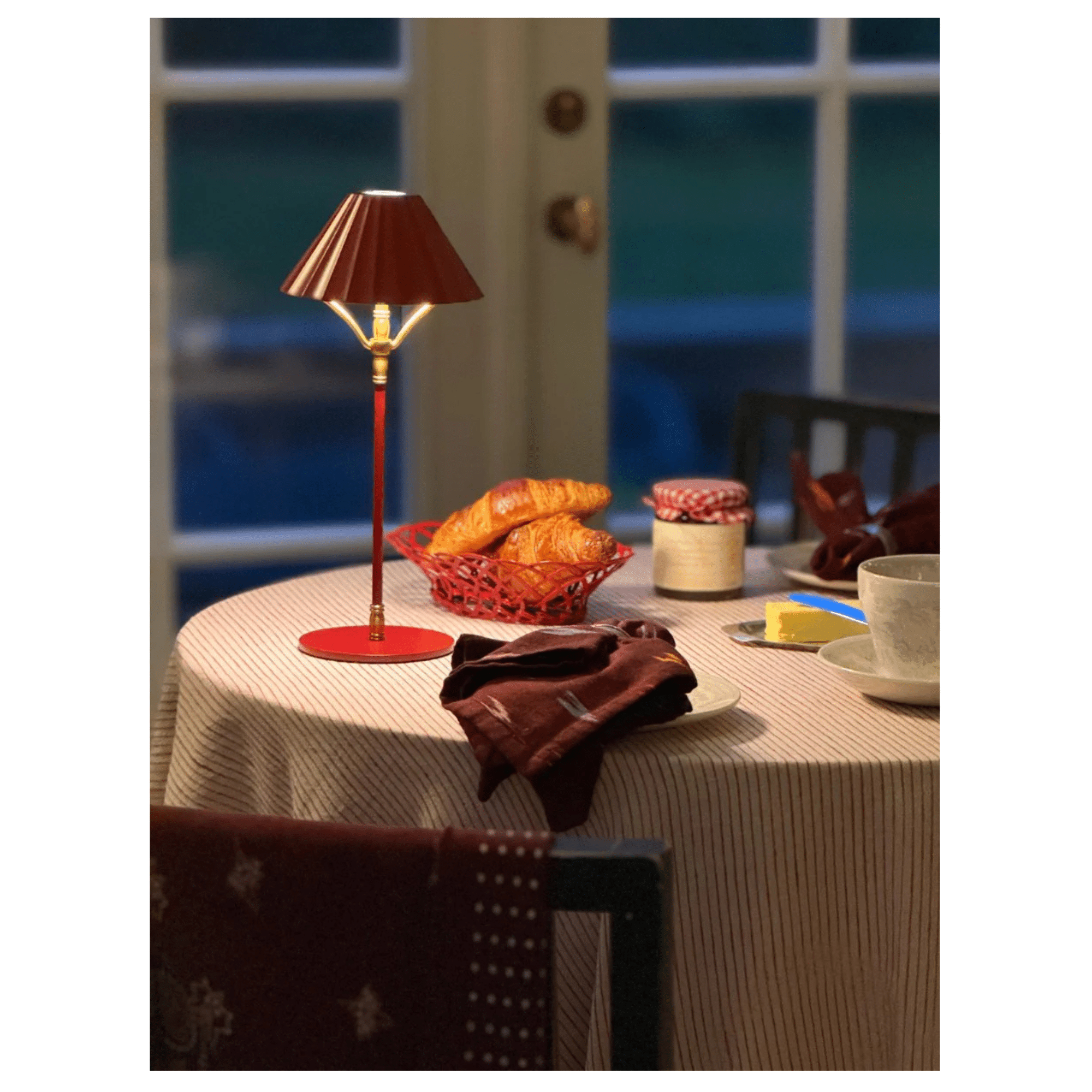 Skapa en varm, intim och elegant atmosfär med bordslampa med skärm BORDEAUX – en sladdlös, bärbar och uppladdningsbar bordslampa i exklusiv vinröd finish. Den tidlösa designen kombineras med modern funktionalitet, vilket gör BORDEAUX till ett självklart val för både inomhus- och utomhusmiljöer.