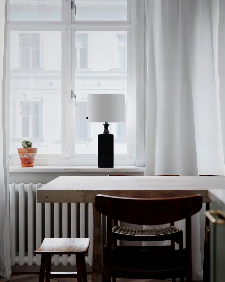 Woody bordslampa kombinerar enkelhet och funktion med sin svartmålade askfot och vita linneskärm. Den tidlösa designen gör att den passar in i alla typer av inredning, från det moderna till det mer klassiska hemmet. Med två olika höjder att välja mellan, 42 cm och 56 cm, är Woody lätt att anpassa efter dina behov och kan placeras precis där du behöver den.