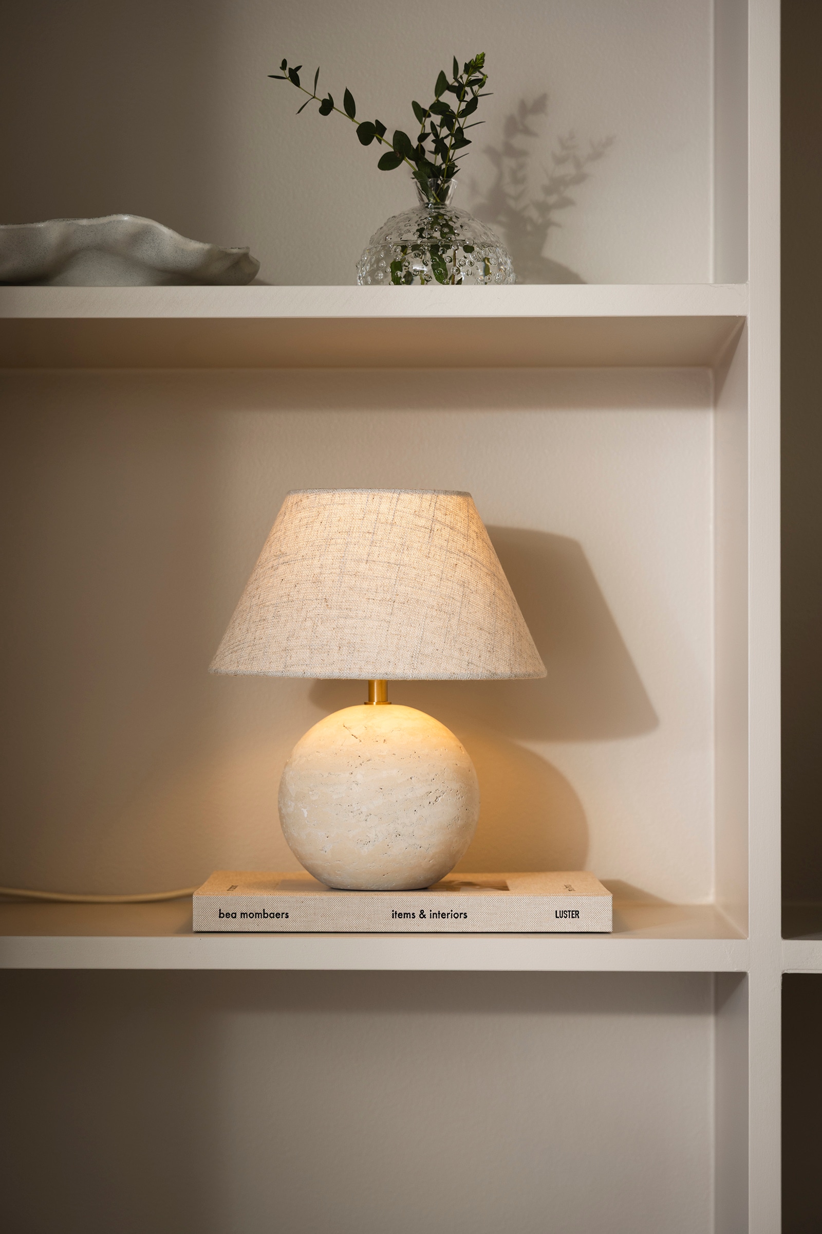 Globen Lighting Castello Bordslampa, beige marmor med linneskärm