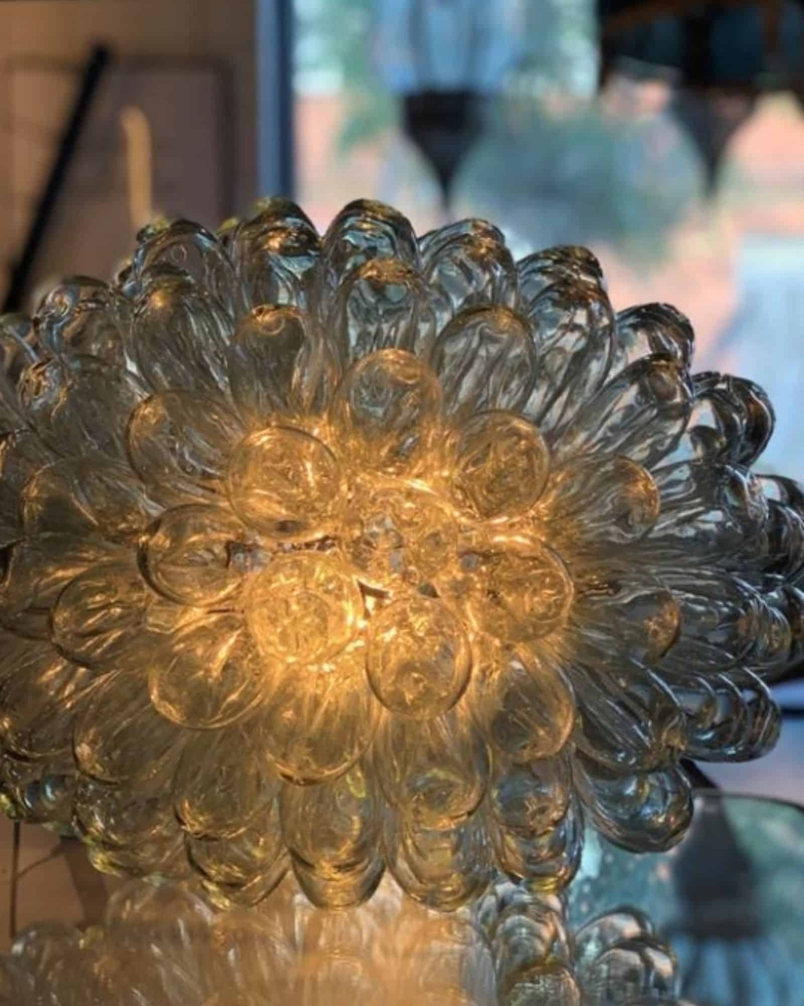 Grapelampan kan användas både som dekorativ skulptur och som belysning. En elkabel medföljer så att du enkelt kan förvandla klustret till en stämningsfull lampa. Placera den i ett fönster, på en hylla, direkt på golvet eller hängande i ett hörn – ljuset som filtreras genom glaset ger ett poetiskt skimmer till rummet.