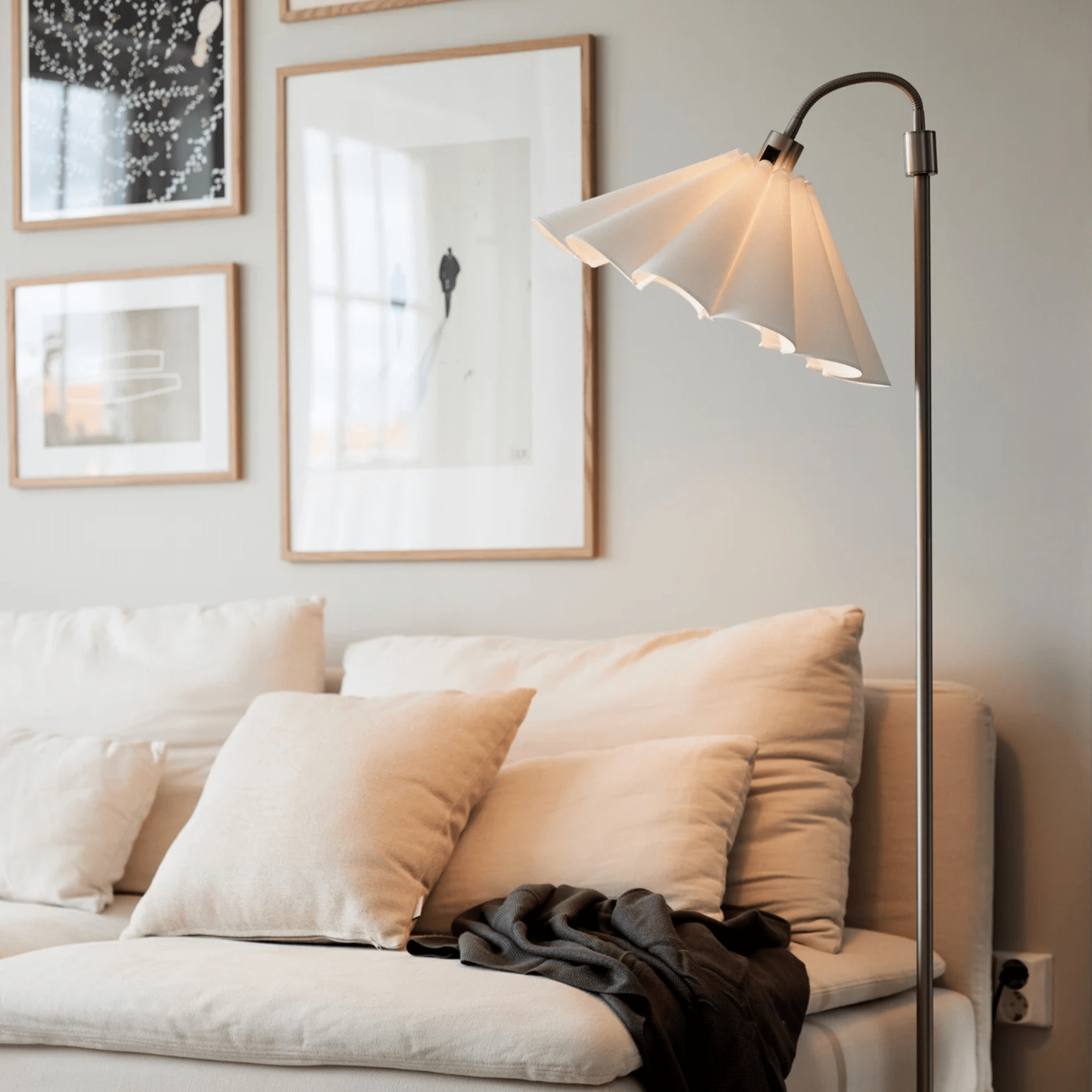 Amy golvlampa fungerar lika bra som läslampa vid soffan som stämningsbelysning i vardagsrum eller sovrum. Ljuskälla köps separat.