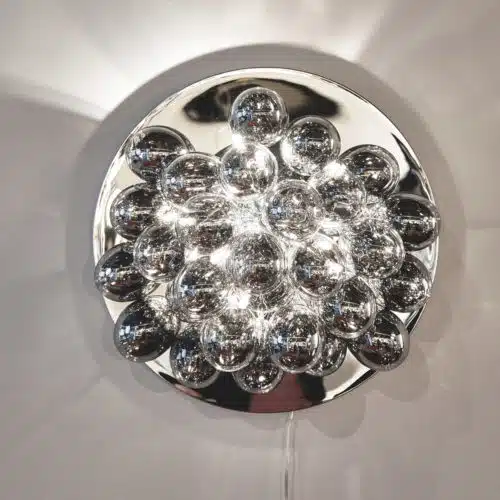 Gross vägglampa passar dig som vill att din vägglampa ska vara mer än bara en lampa. Gross vägglampa är maffig och dekorativ och smyckar din vägg likt ett konstverk. Lampan består av 30 vackra glaskulor i färgen amber eller rökgrå. Gross vägglampa har en diameter på 60 centimeter och ett djup på 30 centimeter. Glaskulorna har en diameter på 10 centimeter. Sladden till Gross vägglampa är transparant och 2 meter lång och lampan har en inbyggd kvalitetsdimmer med reglering på sladden.