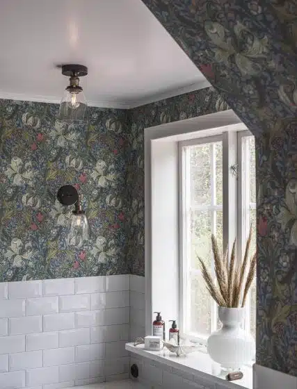 Vägglampa i klassisk design med klarglas och metallchassi i mattsvart/mässing ytfinish. Den är fuktskyddad i IP23 klassning och passar bra i badrumsmiljöer. Eftersom glasskärmen är handgjord kan det förekomma enstaka luftbubblor i glaset samt en viss ojämnhet i glastjocklek över glasytan.