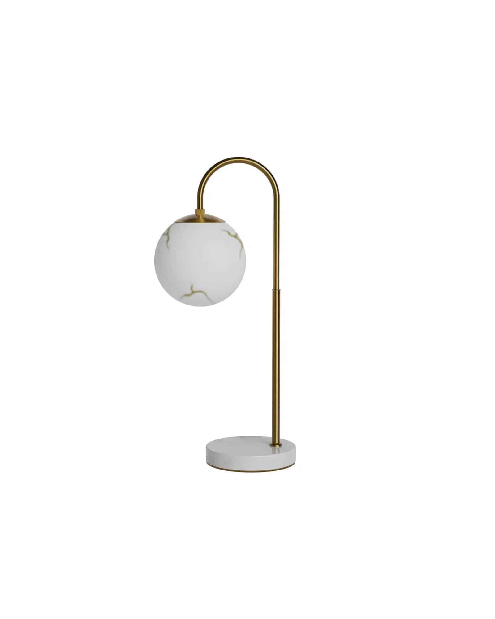 Kombinationen av marmor, glas och mässing gör lampan till ett dekorativt statement som fungerar lika bra i moderna hem som i mer klassiska inredningar.