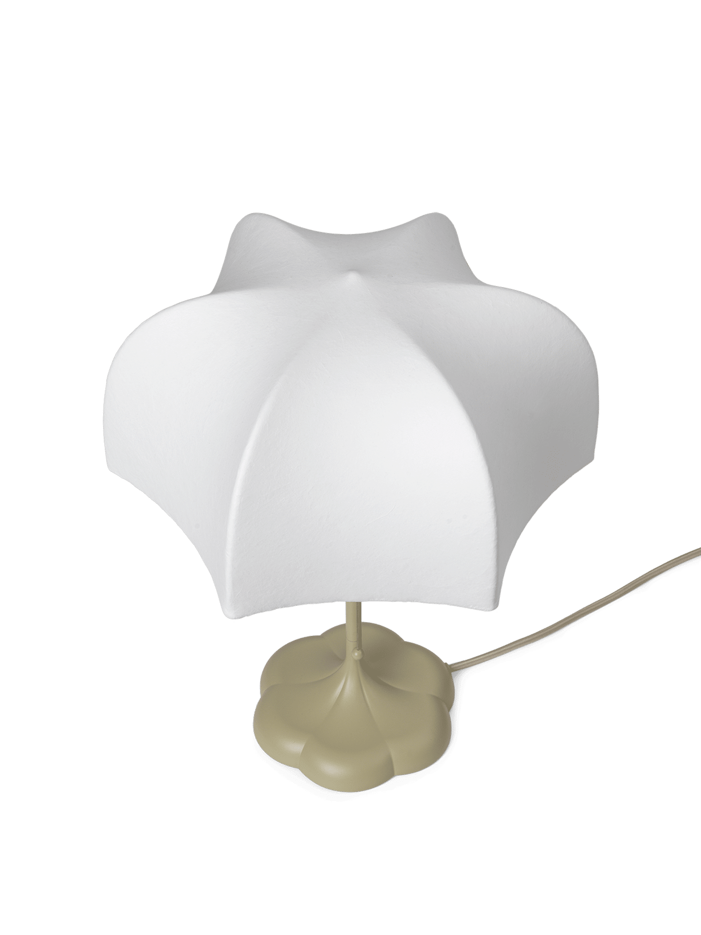 Lampans skärm har en unik konstruktion. Ett tunt polymerskikt sprayas över en struktur av stål. Resultatet blir en halvtransparent form som liknar en blomma.