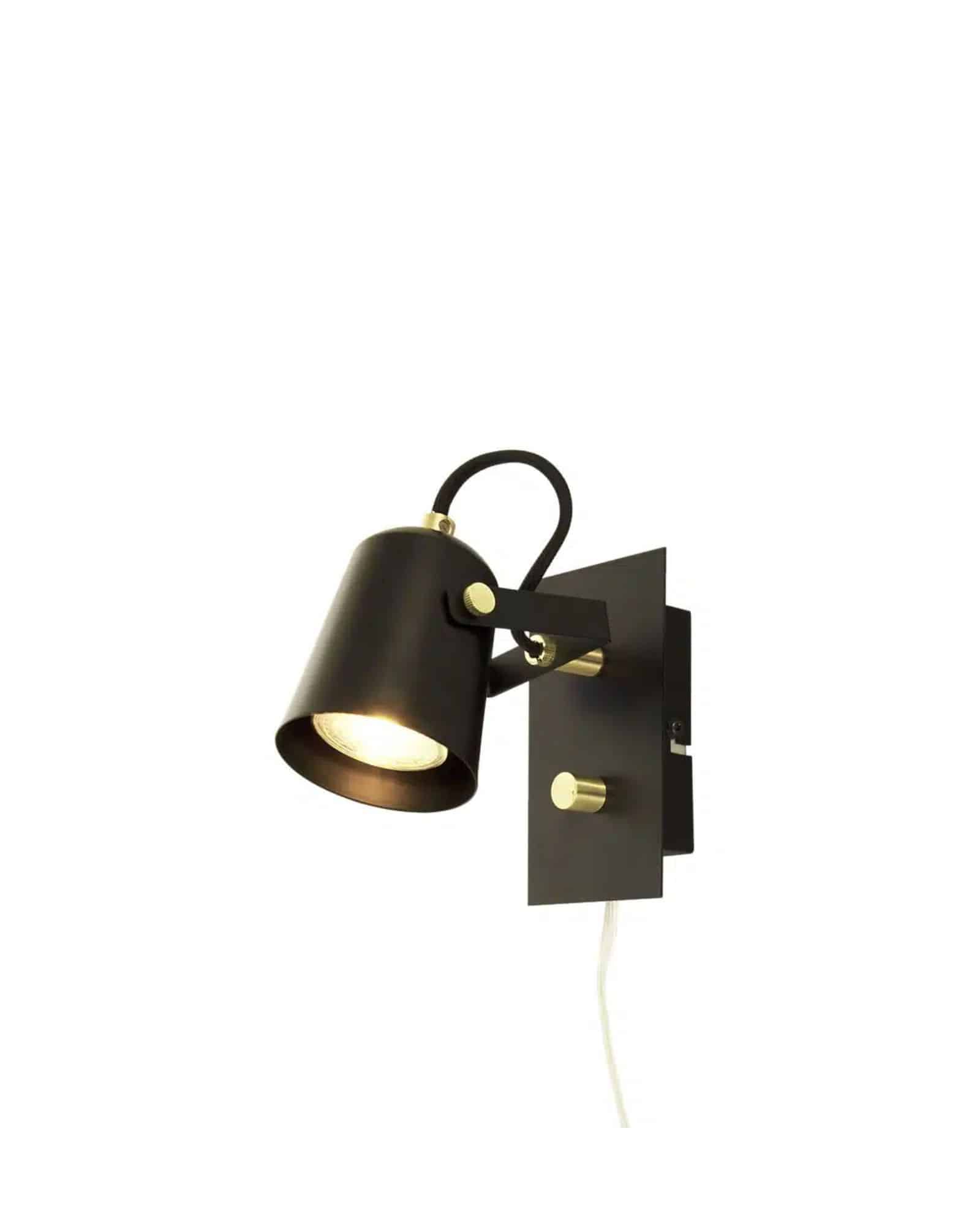 Aneta Metz vägglampa i svart och matt mässing är en modern vägglampa med tydliga industriella influenser. Den kombinerar rå design med funktionella detaljer och passar perfekt i både moderna och klassiska hem.