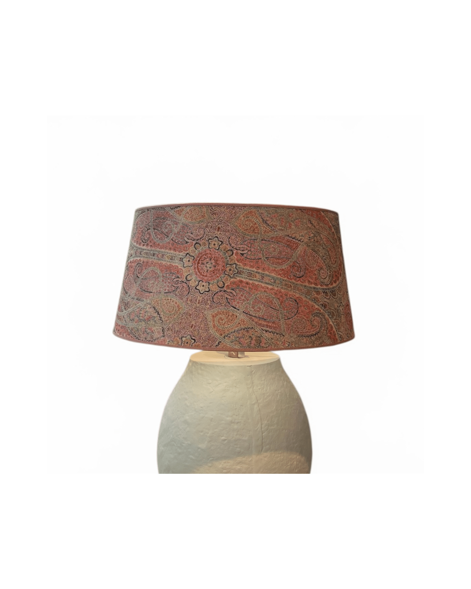 Vidare framhäver lampskärmens form en tidlös siluett som passar lika bra i traditionella miljöer som i mer samtida inredningar. Tack vare den låga, breda modellen sprider ljuset sig mjukt och jämnt, vilket i sin tur skapar ett behagligt sken. Samtidigt ger det dekorativa Sheldon Paisley Rose-tyget ett levande uttryck, och därmed tillför lampskärmen både karaktär och elegans.