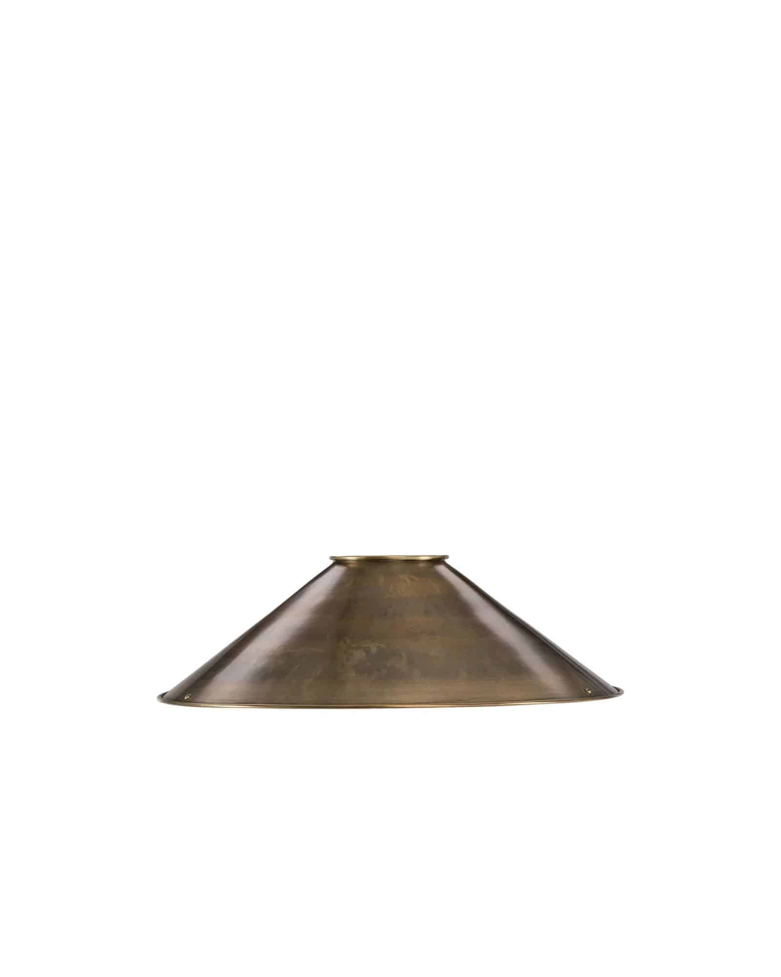 Tillverkad i aluminium med en vacker finish i antik mässing får lampskärmen ett gediget och exklusivt uttryck samtidigt som materialet gör den både slitstark och lätt att underhålla.