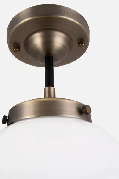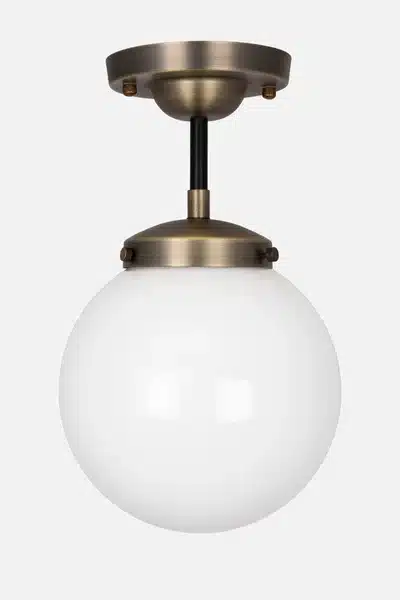 Alley taklampa från Globen Lighting med en klassisk design med fina detaljer i metall och en rund lampskärm i opalglas perfekt för både badrummet och köket.