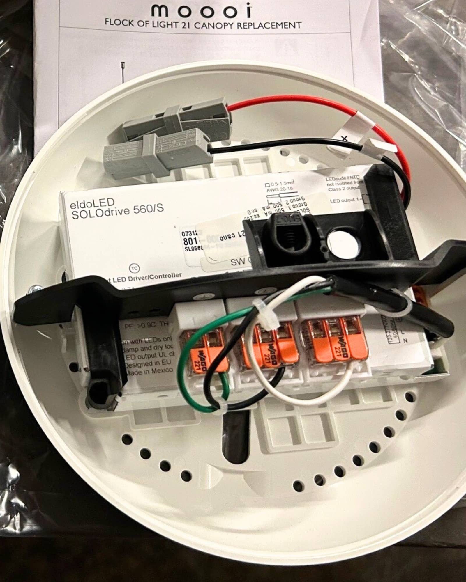 Moooi Flock of Light 21 pebble III canopy including Eldoled driver CE/UL. Om du vill kunna dimra din Flock of Light 21 på ett smidigt och stilrent sätt, är den här artikeln det perfekta komplementet.