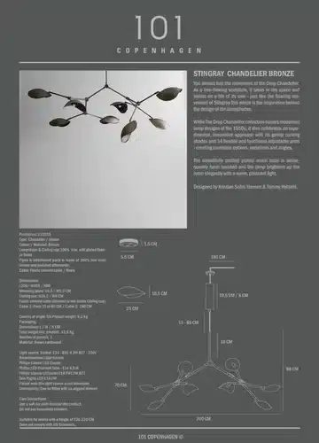 Avslutningsvis är 101 Copenhagen Stingray Chandelier – Bronze inte bara en lampa, utan ett stycke designhistoria som förenar skandinavisk minimalism med internationell elegans.