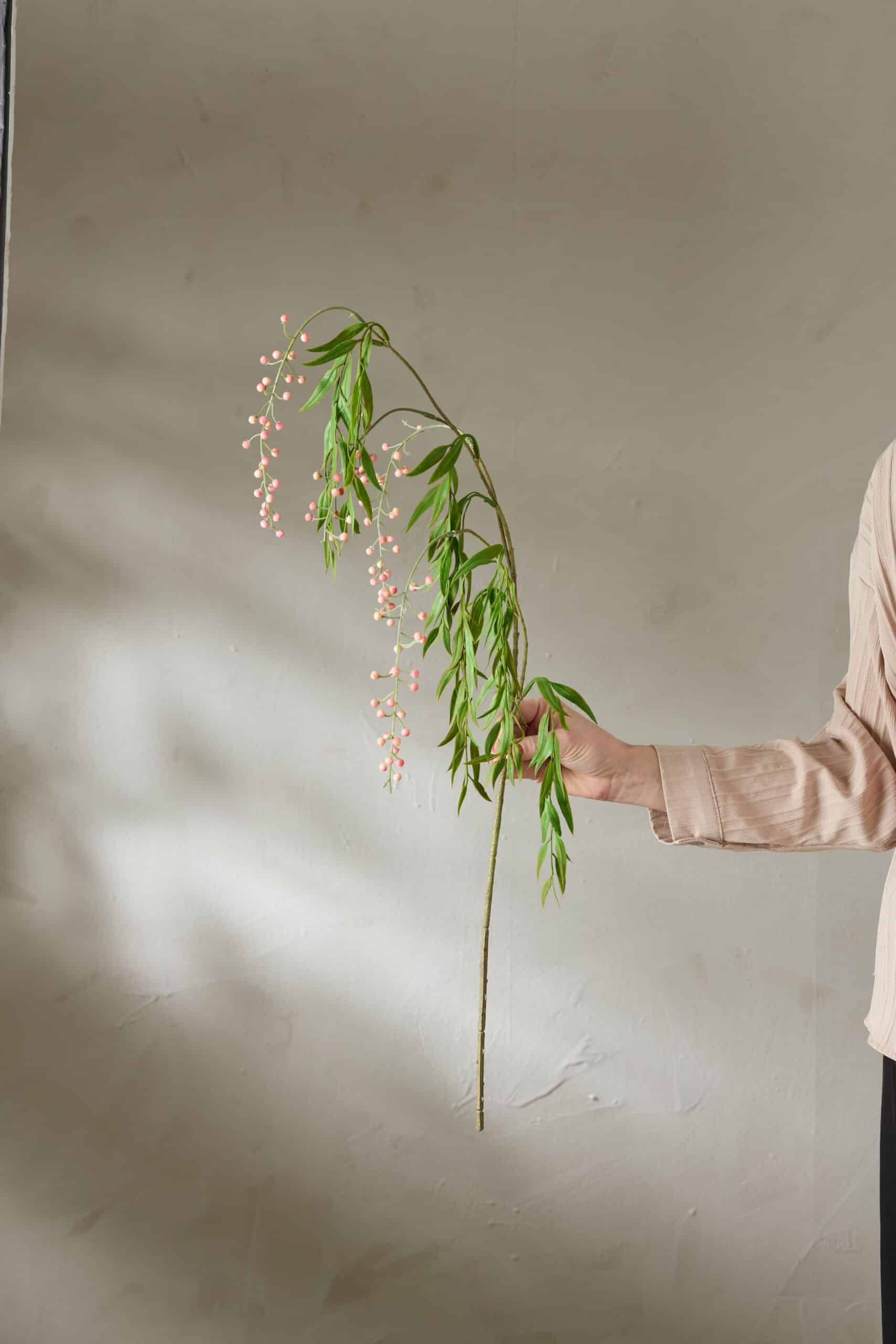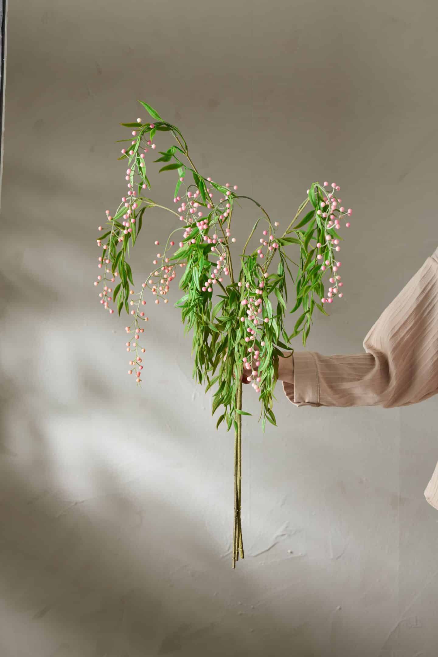 Lägg till en subtil, men ändå vacker detalj med konstväxten bärkvist. Den kan användas för att komplettera blomsterarrangemang eller stå för sig själv i en enkel vas. Med sina realistiska bär och grenar skapar den en naturliknande atmosfär utan krav på underhåll.