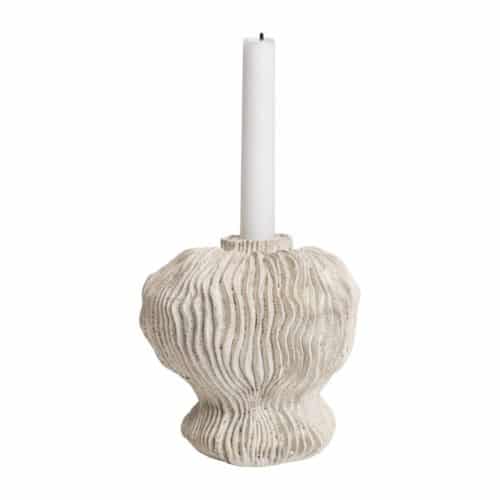 Porslinslampa med vit emaljering och safari-inspirerat mönster i svart och silver.