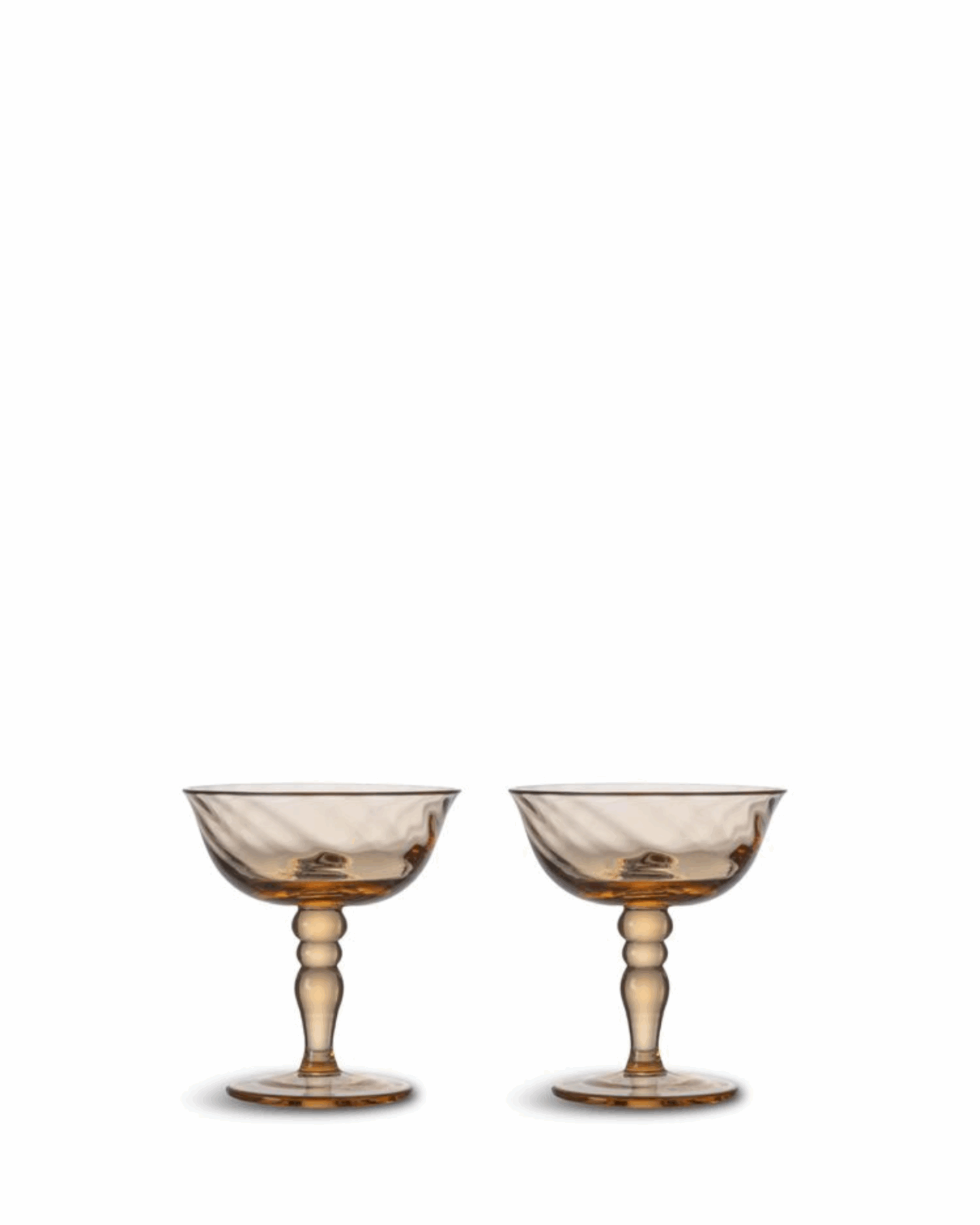 Opacity italiensk kupa är inspirerad av italienska vingårdar, där det lilla glaset både bevarar dryckens temperatur och adderar en känsla av elegans och vardagslyx. Den tunna, skira formen tillsammans med ett randigt mönster i persikofärgat glas gör detta till ett uttrycksfullt glas som passar lika bra för små drinkar som för desserter.