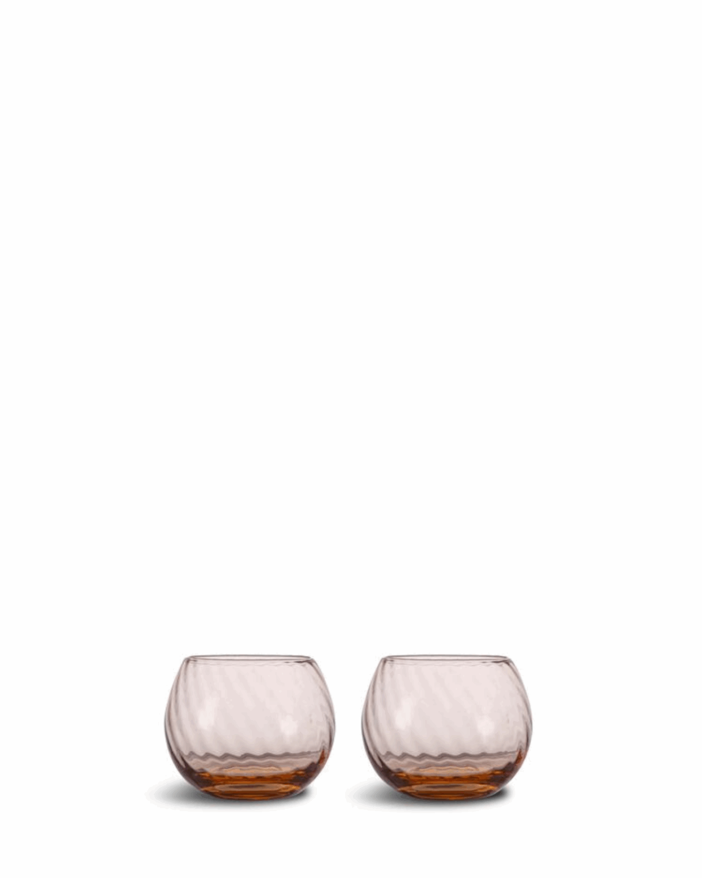 Opacity vattenglas i persikofärgat glas, elegant och lekfull design