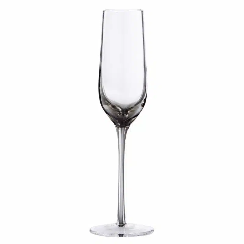 Munblåst champagneglas i rökfärg från Lene Bjerre. Detta champagneglas mäter H25xØ7,5 cm och kan innehålla 20 cl. Alla våra Victorinne champagneglas är gjorda med en rökfärg i den nedre delen av glaset. Rökfärgen är inte målad utan är solid vilket gör att färgen inte slits ut vid upprepad användning. Observera att ju mindre varje glas från denna serie är, desto mörkare blir den rökta färgen. Glasen är munblåsta och på grund av denna handgjorda process kommer varje glas att få sitt eget unika och distinkta utseende. Du hittar därför inte två likadana glas.