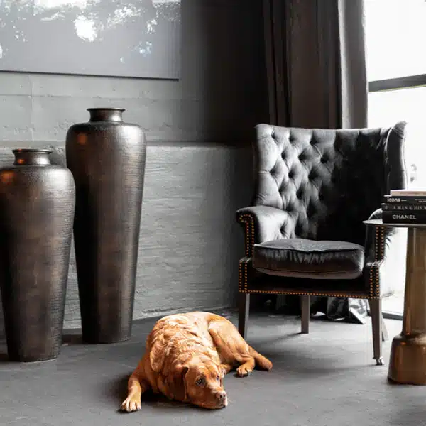 En vacker Urna av metall med hammrad yta från Artwood. Erbjuder ett inbjudande utseende som passar perfekt i både minimalistisk och industriell inredning. Använd urnan som en elegant inredningsdetalj eller som en tidlös vas för dina favoritgrenar. Observera att urnan endast ska användas inomhus och inte för direkt plantering. Den är idealisk för torkade dekorationer eller blommor, vilket gör den till ett mångsidigt tillskott till ditt hem.