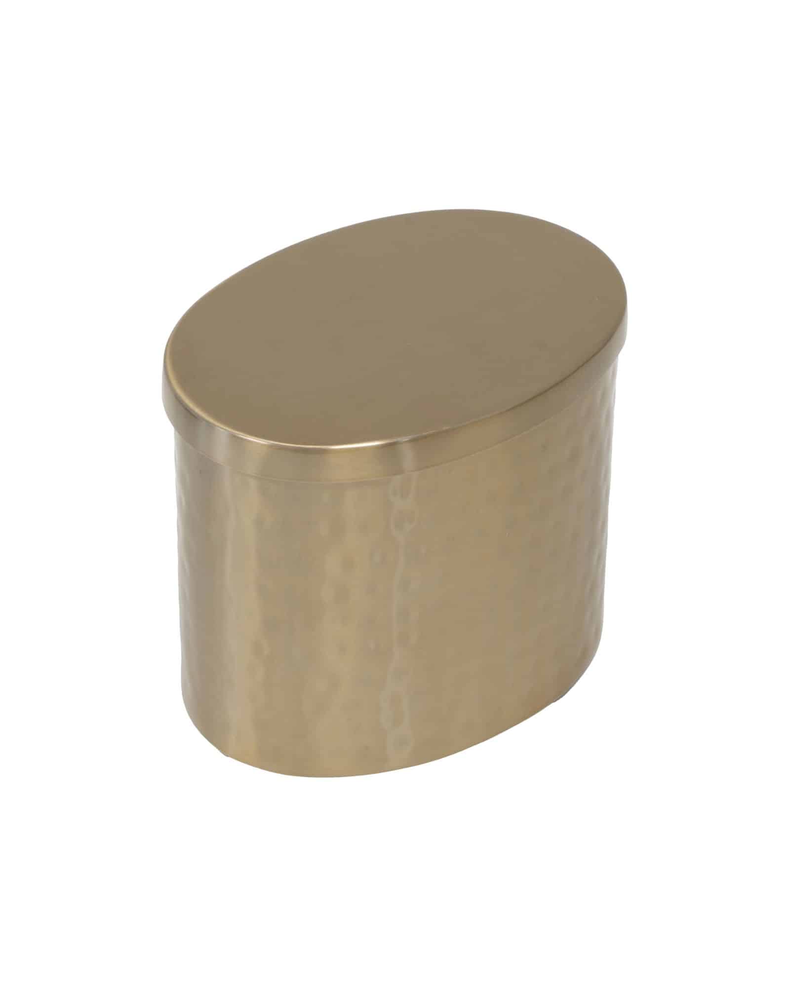 Halvor Bakke Lutz låda med lock ger badrummet en elegant och praktisk detalj. Den är tillverkad i bronsfärgad metall och kombinerar stilren design med funktion. Locket håller småsaker som bomullsrondeller, smycken eller andra nödvändigheter organiserade och lättillgängliga.
