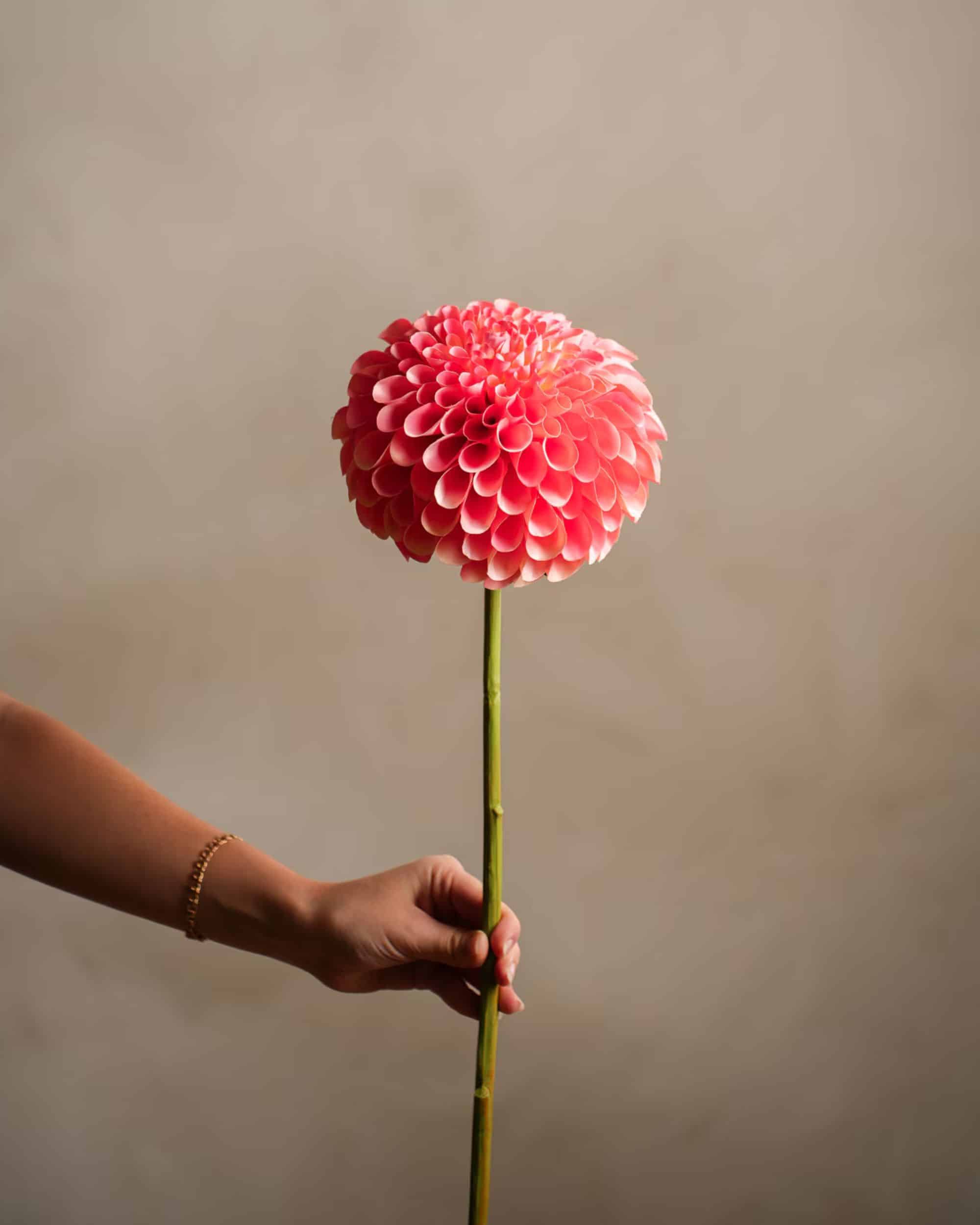 Vår Dahlia är också ett uppskattat presentval. Den passar perfekt på matbordet, i hallen eller på kontoret och blir snabbt en dekorativ detalj som drar blickar till sig. Tack vare de naturtrogna kronbladen ser blomman både verklighetstrogen och livfull ut.