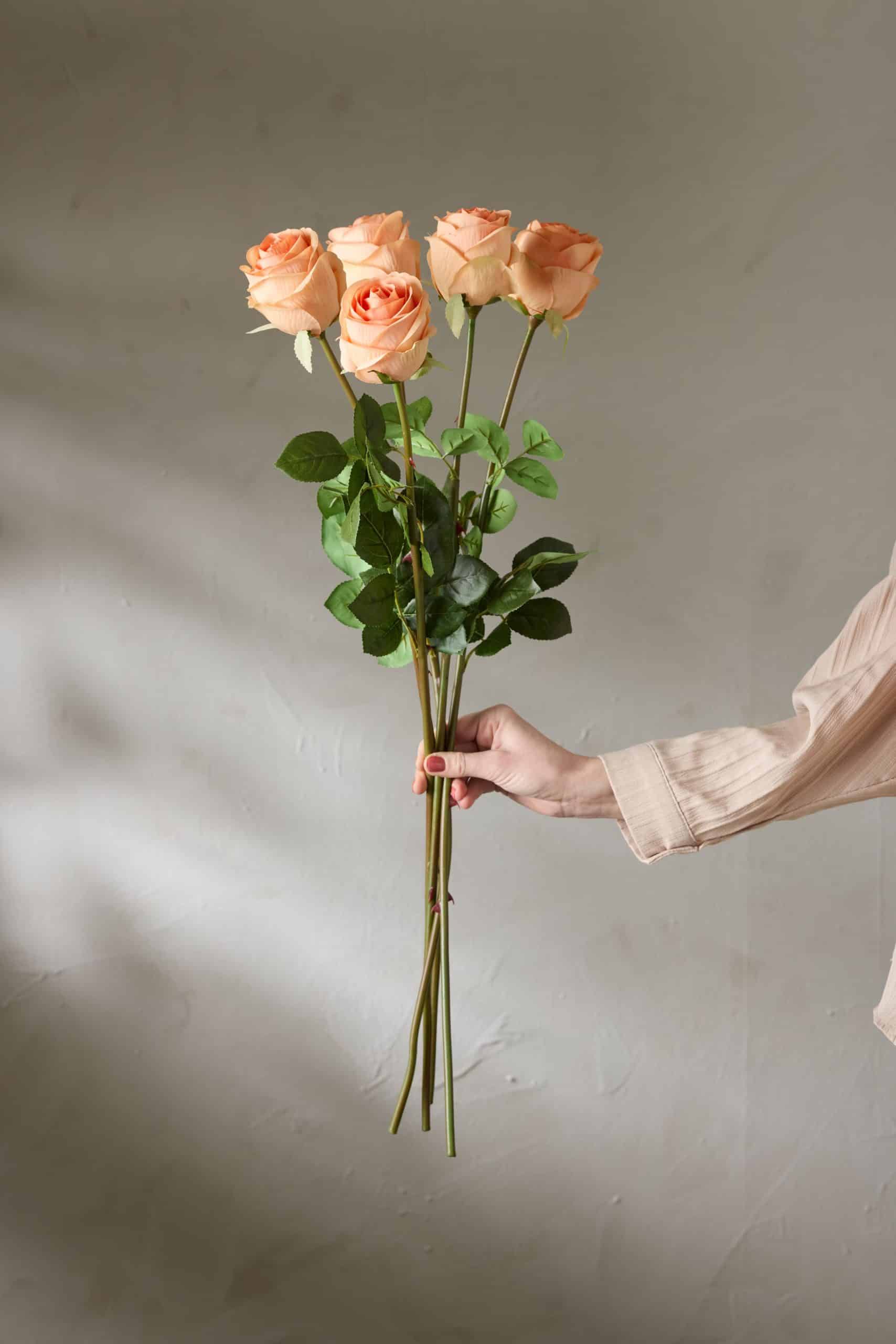 Förnya ditt hem med Ros! Kombinera gärna denna vackra Aprikosfärgade Ros med snittblommor i andra färger och former för att skapa en härlig bukett – Skönhet utan krångel.