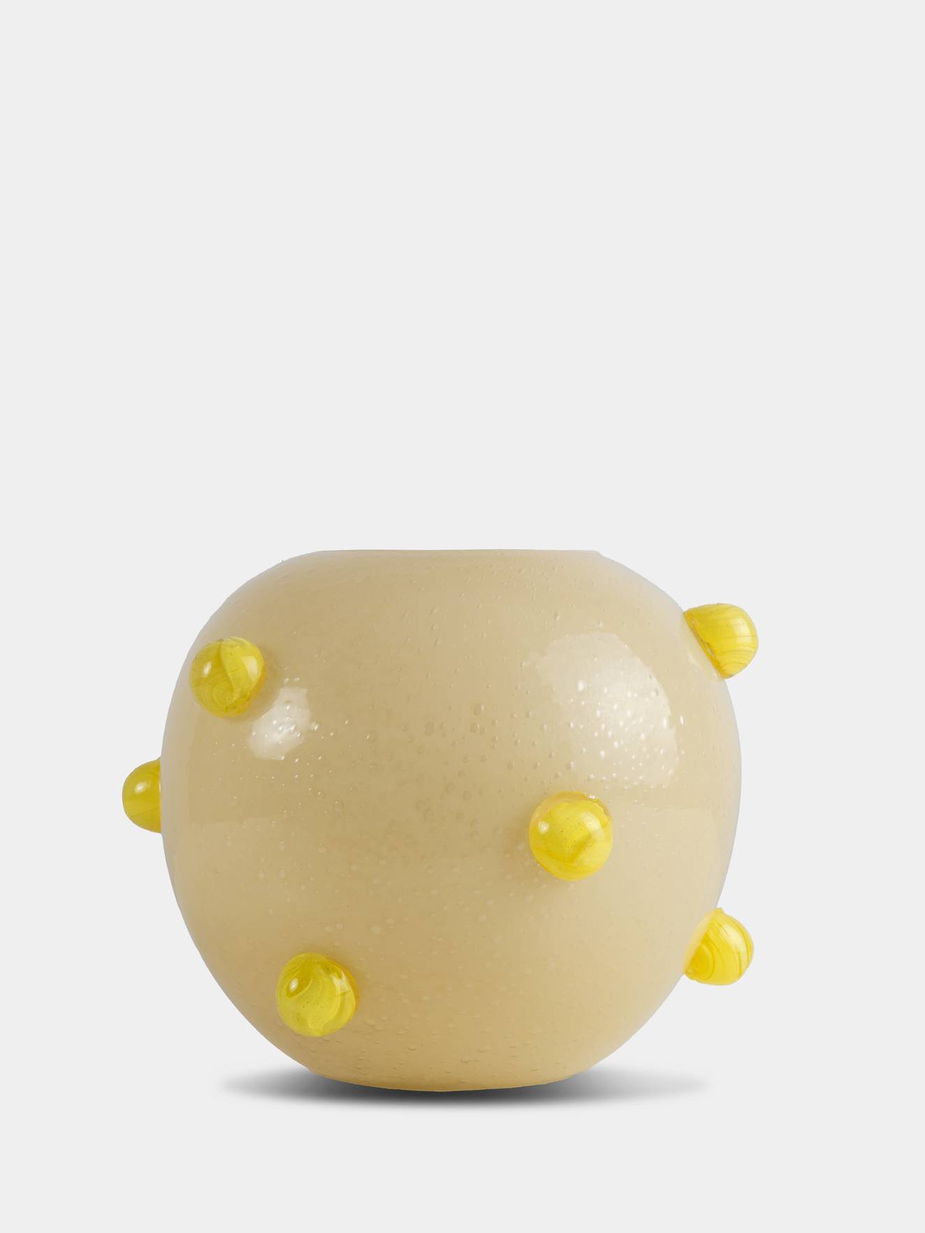 Vasen Arlo är pompös och extra allt, precis så som Byon vill vara. Med sin runda, tunga kropp prydd av glasbollar tar den sin självklara plats vart den än står. En vas som lyckas vara både ikonisk och lekfull på samma gång. Den beige basen mixad med citrongult skapar en oslagbar kombination. Handgjord. Färg- och strukturskillnader kan uppstå. Design Byon Studio. Levereras i Byon box.