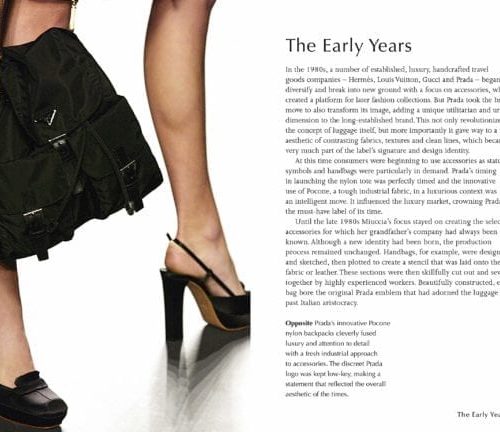 Underskattad elegans och lyx, tekniskt avancerade tyger och sublim design är alla kännetecken för House of Prada. I denna miniatyrmonografi dokumenterar Laia Farran Graves varumärkets historia och arv, från företagets ursprung som lädervarutillverkare till det globala modeimperiet skapat av Miuccia Prada.