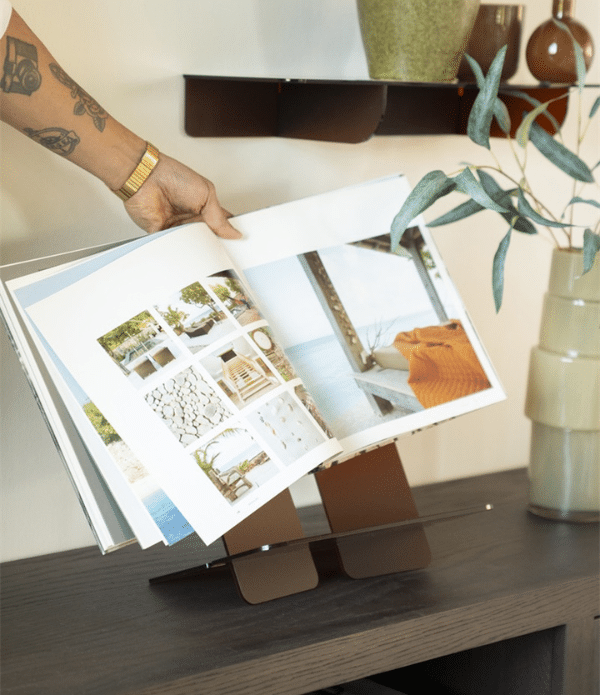 Bokstöd Booq – akryl kombinerar funktionell design med ett minimalistiskt uttryck. Tack vare det transparenta materialet i akryl smälter bokstödet diskret in i rummet, samtidigt som det effektivt håller böcker, mappar och tidningar på plats. Därför passar det särskilt bra i moderna hem och arbetsmiljöer där man vill behålla ett rent och stilrent intryck.