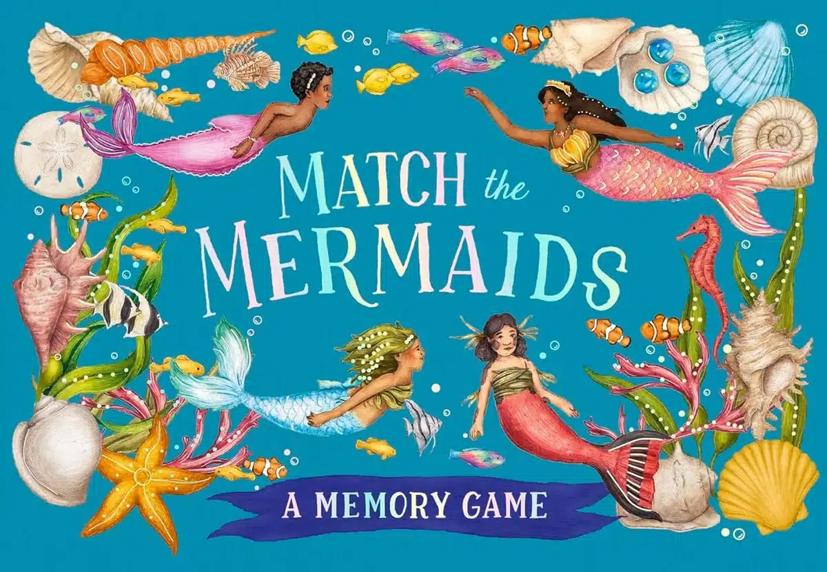 För att spela spelet, placera korten med framsidan nedåt på ett bord och vänd sedan två — visar de samma art? Om de gör det, samlar du ihop paret. Om inte, försök komma ihåg var de olika sjöjungfruarterna finns så att du kan göra en match på din nästa tur.