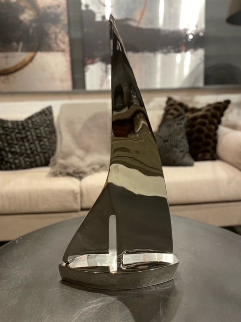 Fin Segelbåt i nickel med måtten: 27x8x50h