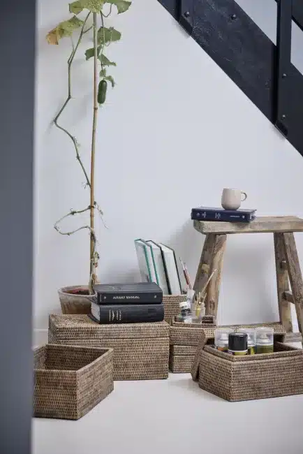 Handflätad ask av högkvalitativ rotting från Norah-serie. Denna serie kännetecknas av användningen av naturmaterial som bambu och rotting, båda snabbväxande växter som är enkla att återplantera och som är hållbara material för heminredning. Materialen flätas och formas med stor precision och passion – en produkt från Norah-serien kan ta allt från en dag till en hel vecka att färdigställa.