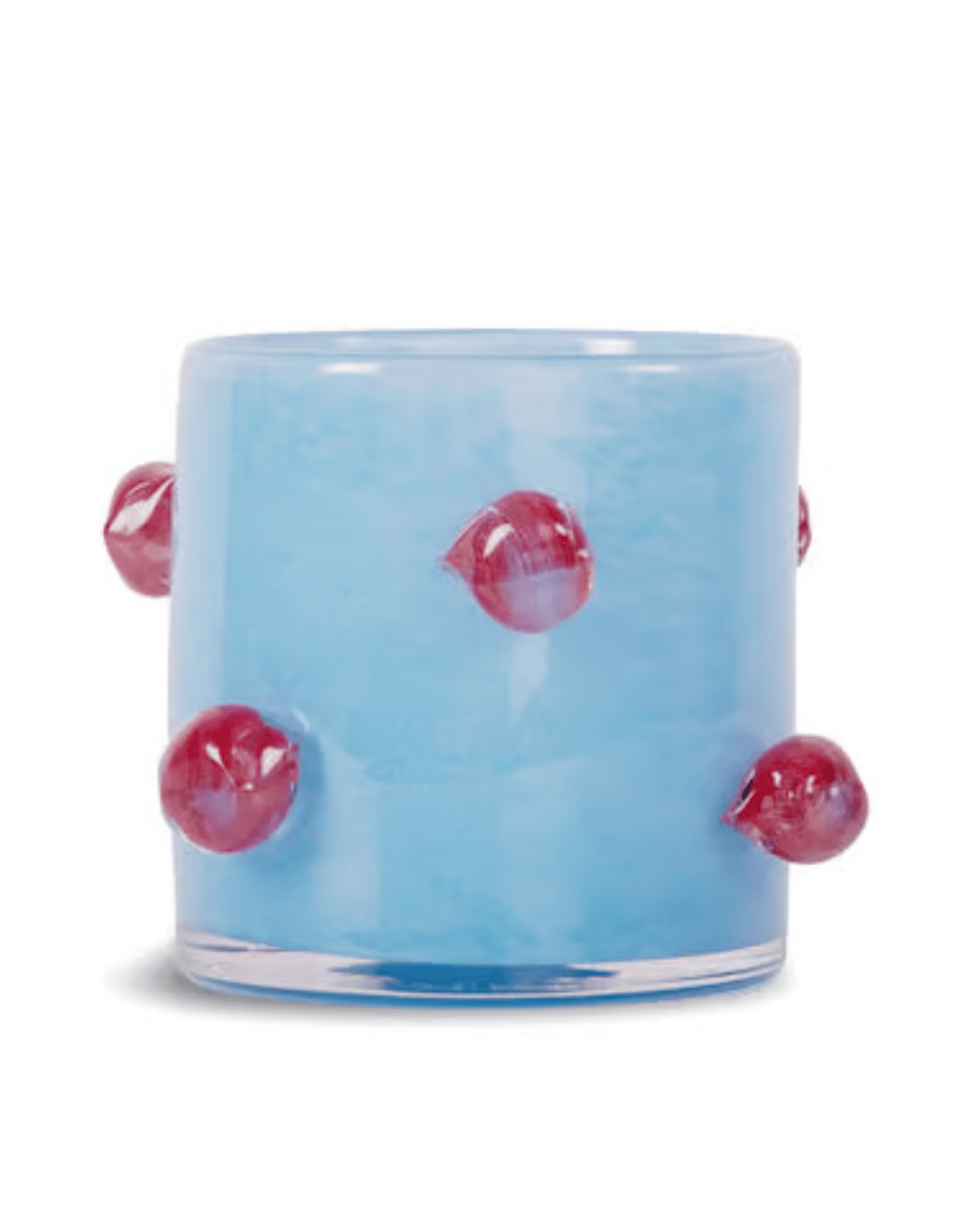 Arlo ljushållare är en lekfull variant av vår älskade Calore. Och likt sina kusiner är Arlo multifunktion identifierad. Använd som vas, ljushållare eller som skål. Den passar till allt överallt och gärna i kombination med både Lori och Lara ljusstake där färger känns igen. Färgen är vacker krispig ljusblå med bordeaux färgade bollar som även det är ikoniskt för Byon. Handgjord, färg- och strukturskillnader kan uppstå. Design Byon Studio. Levereras i Byon box.