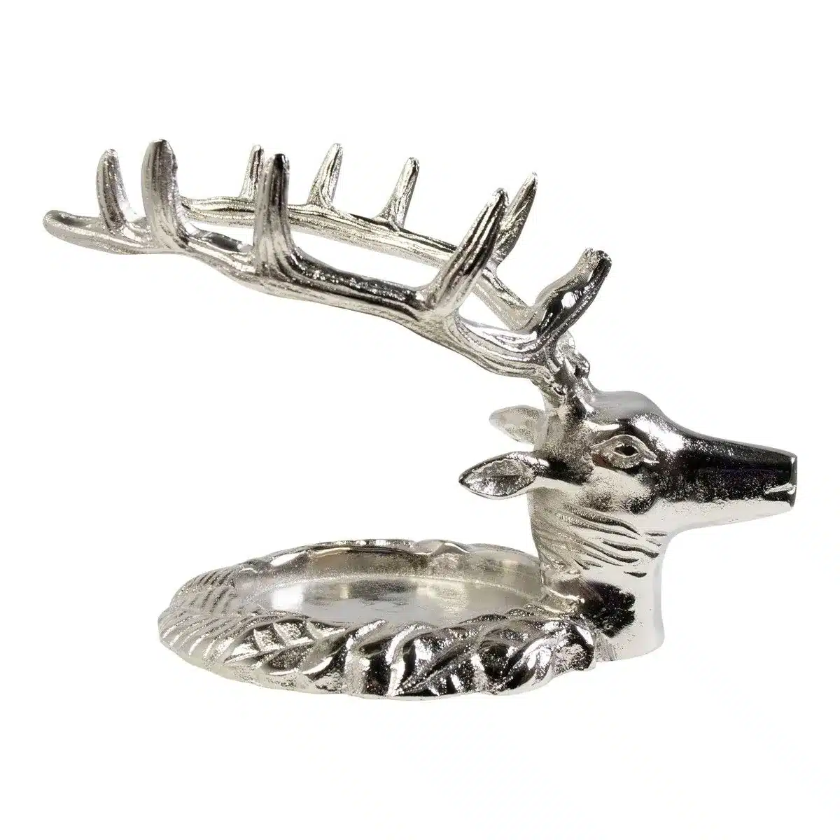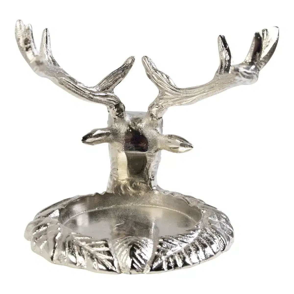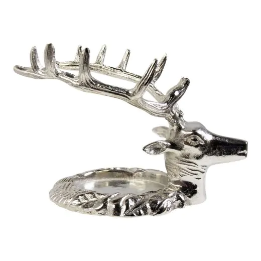Denna vackra ljusstake är formad som en hjort och blir en iögonfallande detalj i ditt hem. Tillverkad i metall med en glänsande silverfinish kombinerar den naturinspirerad design med tidlös elegans.