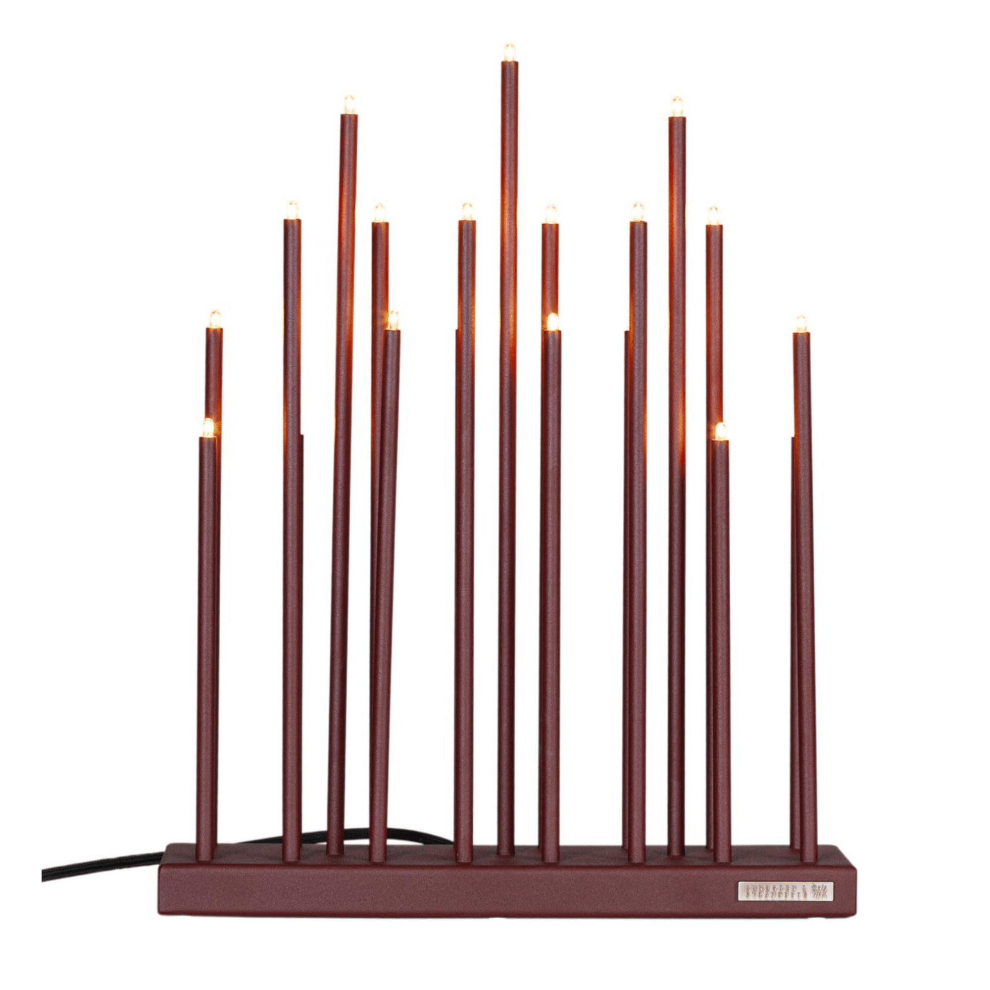 Elflugan adventsljusstake i oxidröd från SMAK Design är en stilren och mångsidig ljusstake som kan användas året runt. Med E5-socklar, medföljande glödlampor och 2700K varmt ljus blir den en elegant detalj i hemmet – perfekt både som adventsljusstake och som modern dekoration.